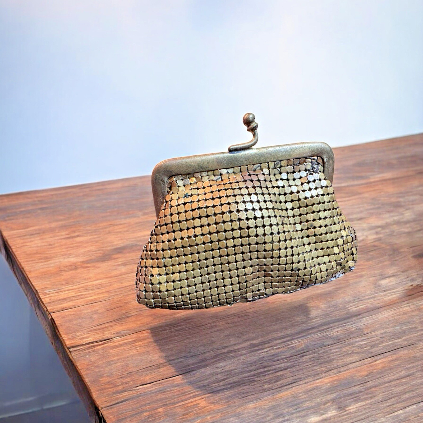 Vintage Mesh Coin Purse with Kissing Clasp Art Deco Gold Tone Whiting Davis