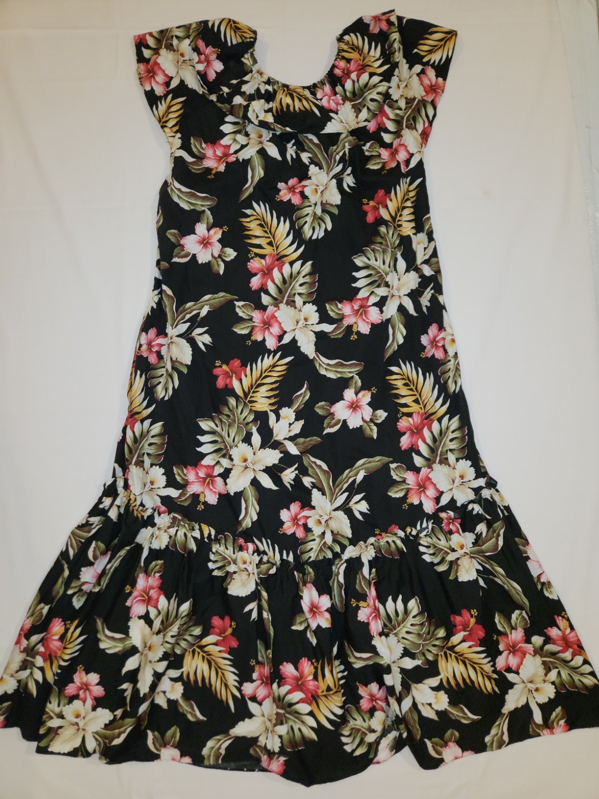 как выглядит Vintage Jade Fashions Hawaiian Muumuu Dress Size Medium 100 Cotton Black Floral фото