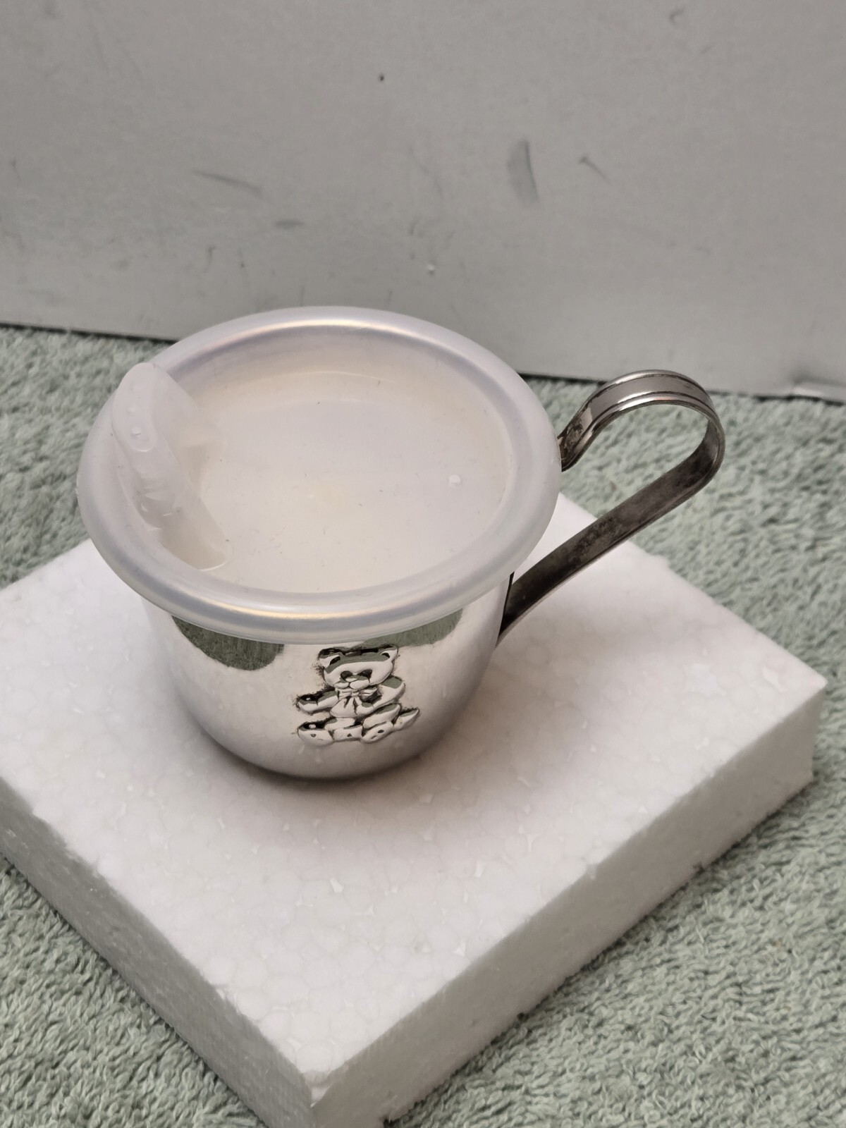 Baby Cup with Teddy Bear Silverplated Made in Hong Kong Plastic Sippy Lid