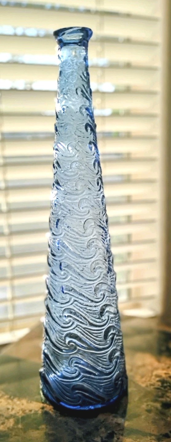 как выглядит Vintage MCM Empoli Italy Glass Genie Bottle Periwinkle Blue Wave No Stopper фото