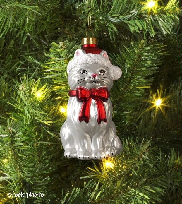 как выглядит Cat Santa Hat Red Bow Christmas Glass Ornament Wondershop by Target фото
