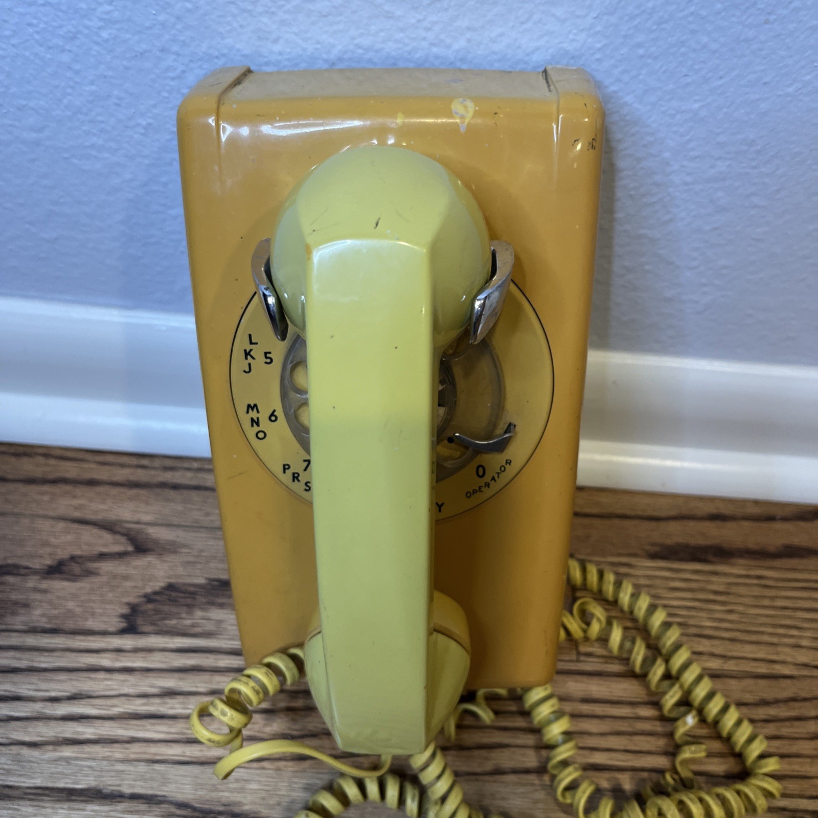 как выглядит Vintage Bell System Western Electric 554 Rotary Wall Phone Yellow 1976 UNTESTED фото