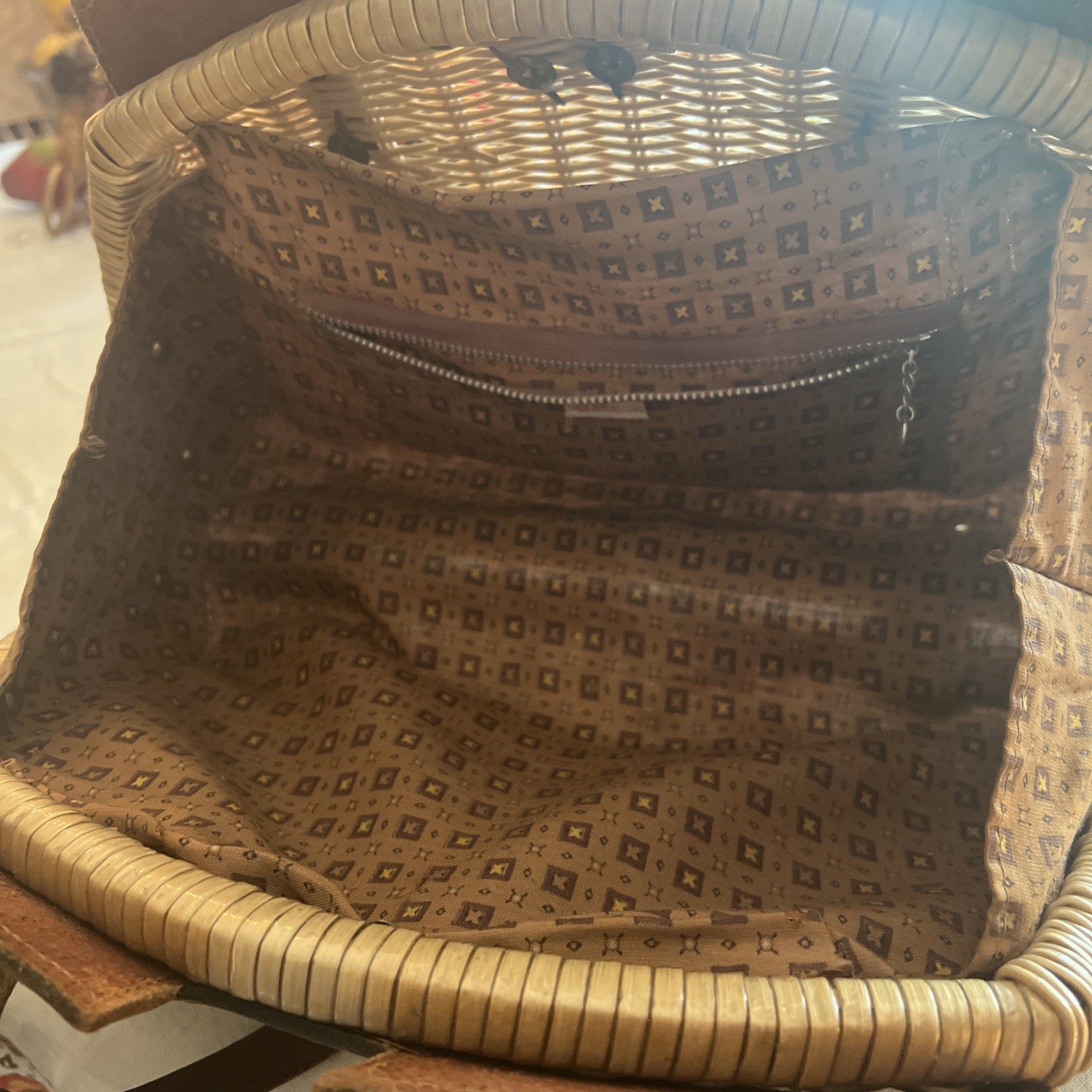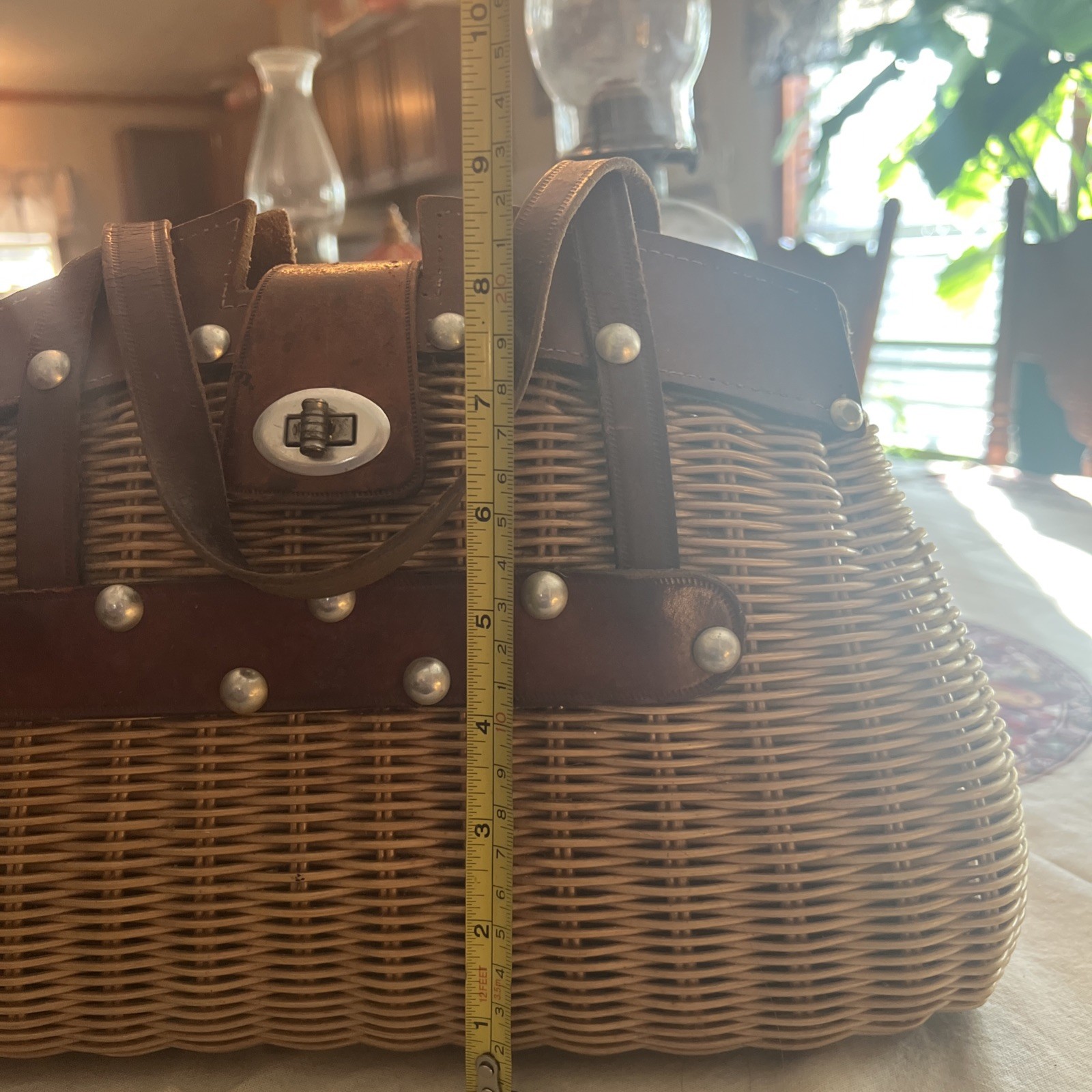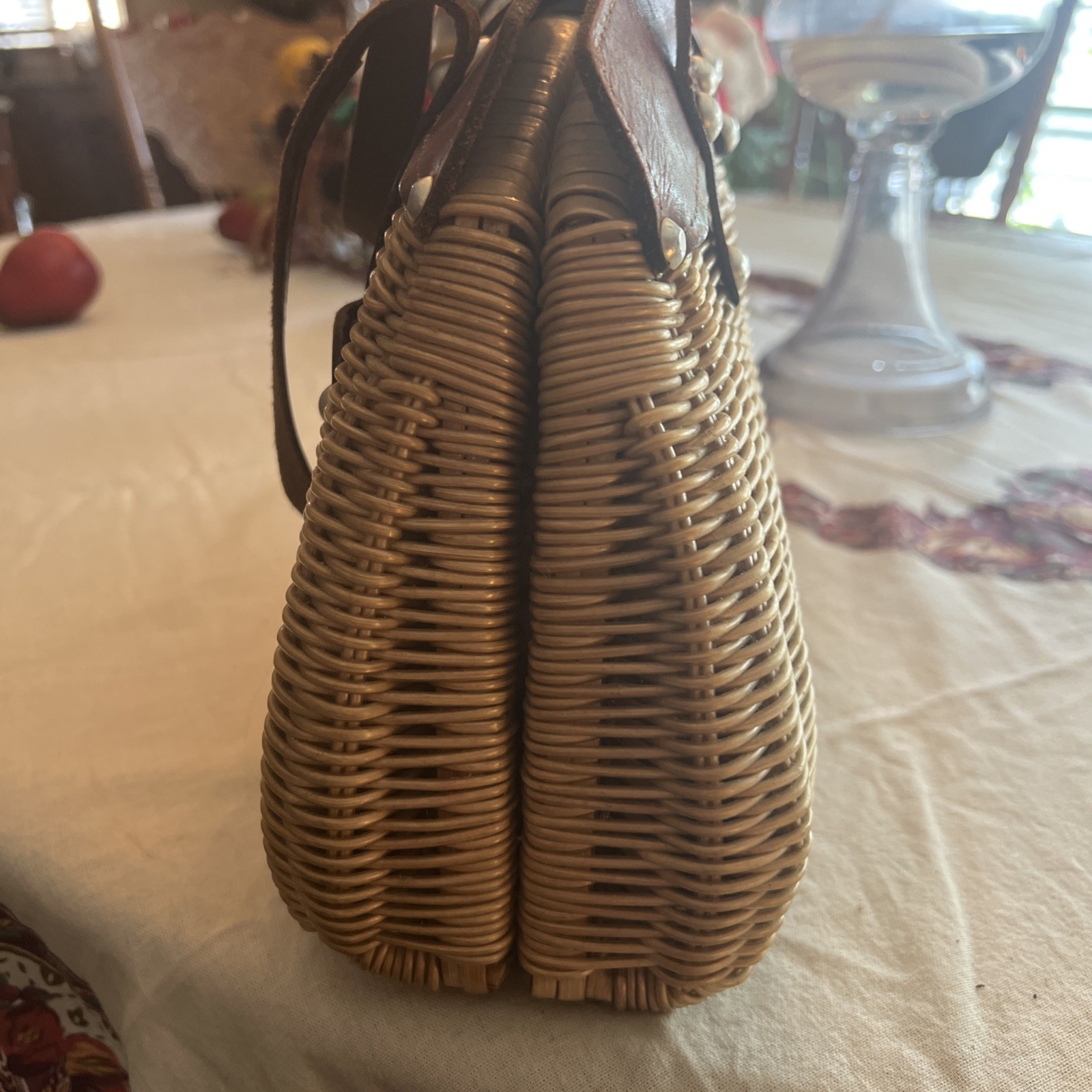 как выглядит Beautiful Vintage Natural Wicker Straw Woven Purse w/Leather Straps Hong Kong фото