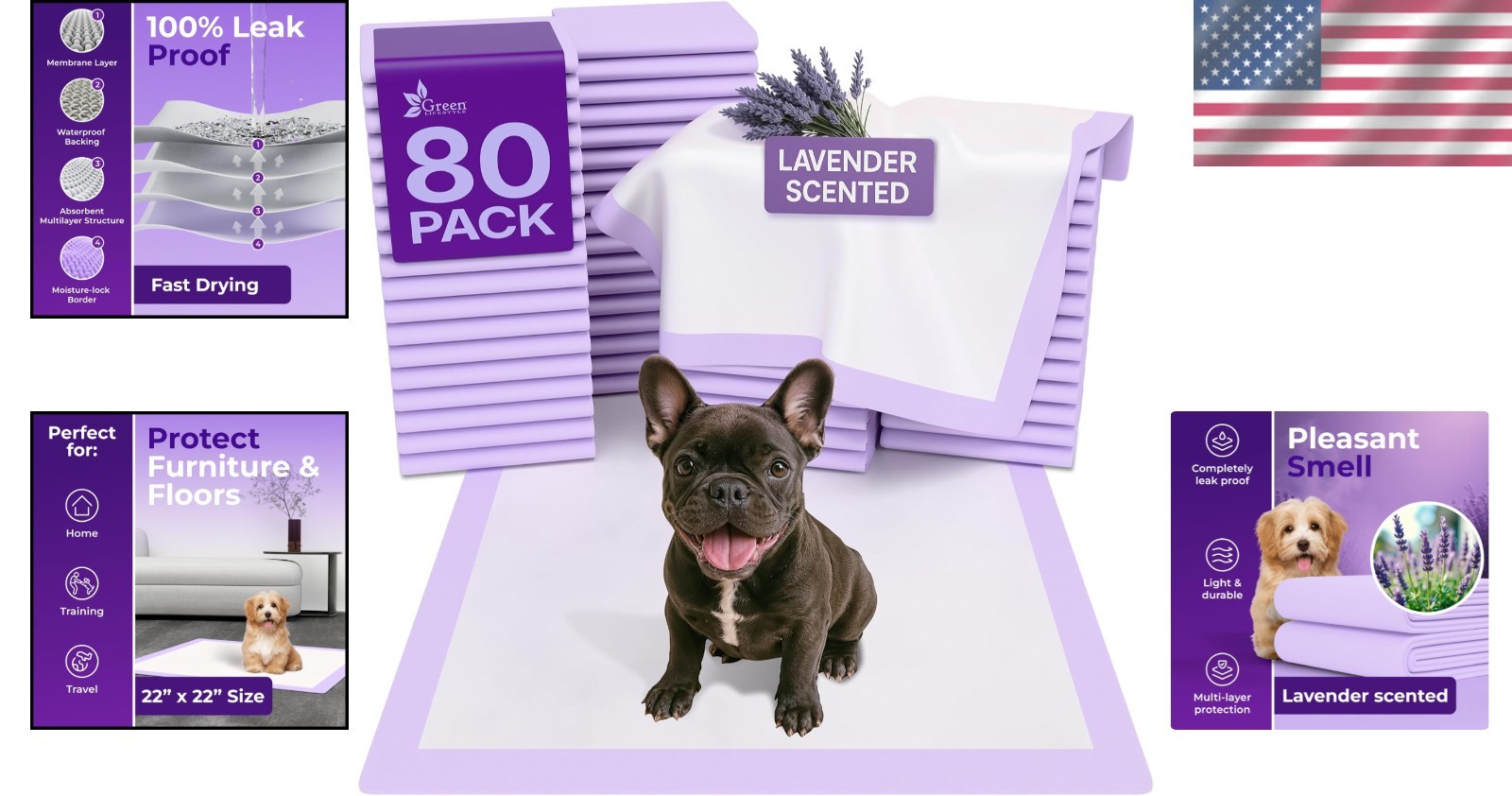 80 Count Lavender Pee Pads for Dogs Cats - Ultra Absorbent Reliable 22x22