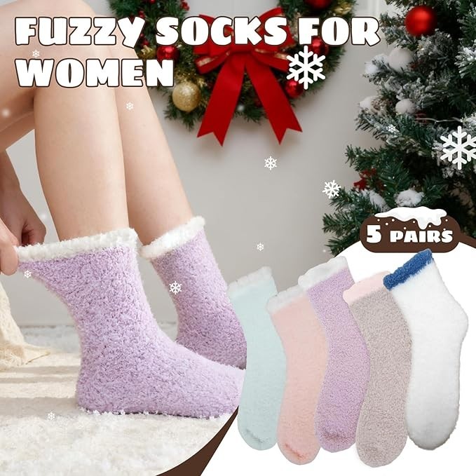 Fuzzy Socks with Grips for Women Plush Winter Warm Soft Cozy Fluffy Slipper S...