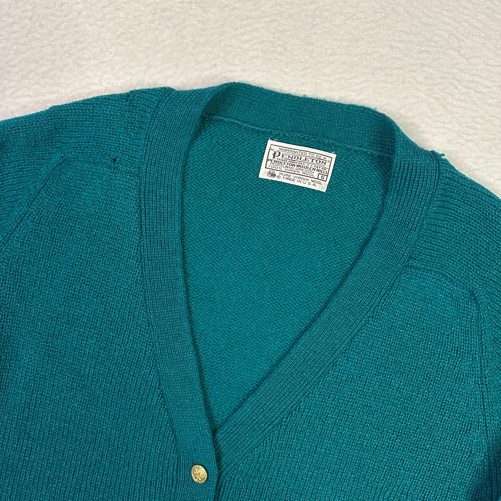 VTG 70s 80s Pendleton Button Cardigan 100 Virgin Wool Teal Sweater Women's S