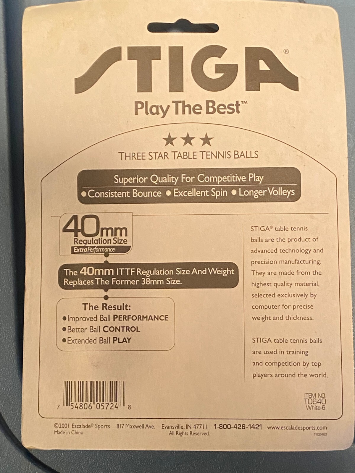 1 Pack Stiga 3 Star White 40mm Regulation Table Tennis Balls 6 NEW BT3 bd3