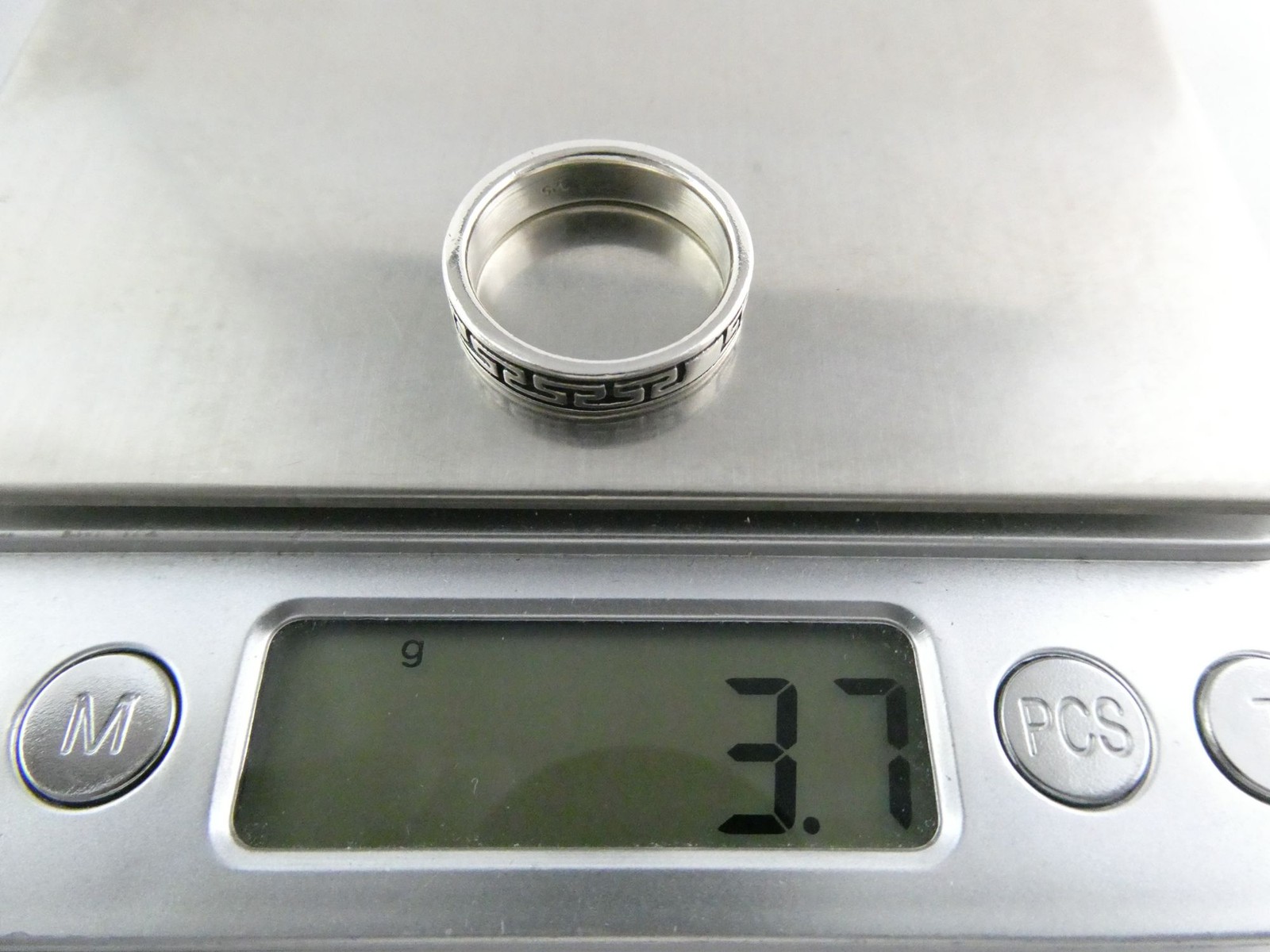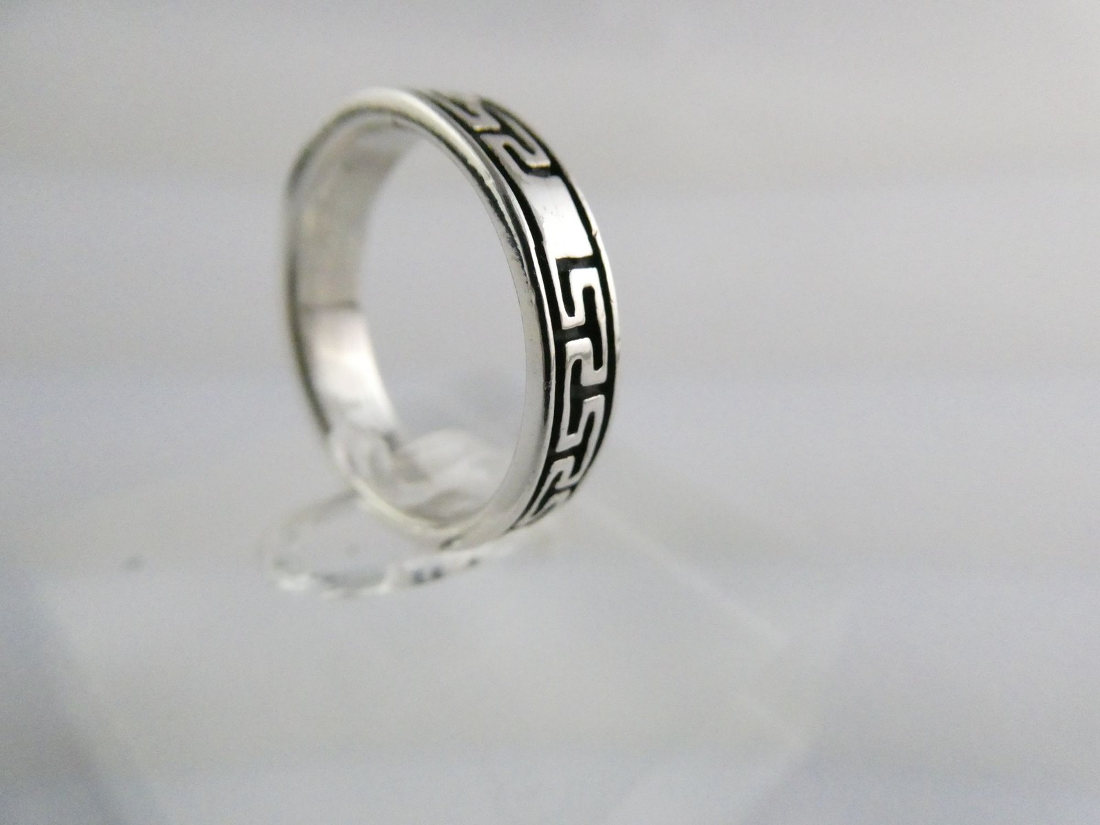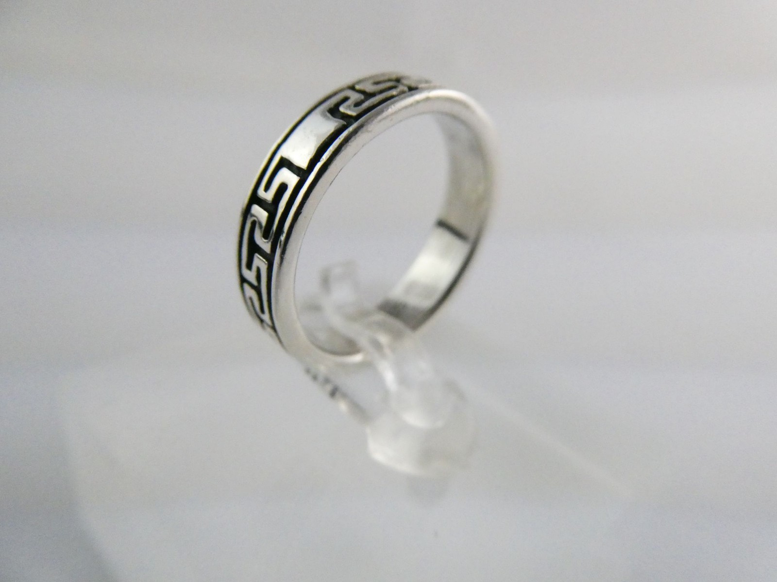 как выглядит Sterling Silver Greek Key Geometric Design Band Ring 925 Size 7.25 Weighs 3.7g фото