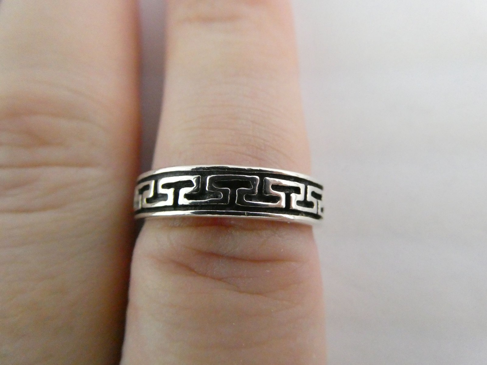 Sterling Silver Greek Key Geometric Design Band Ring 925 Size 7.25 Weighs 3.7g