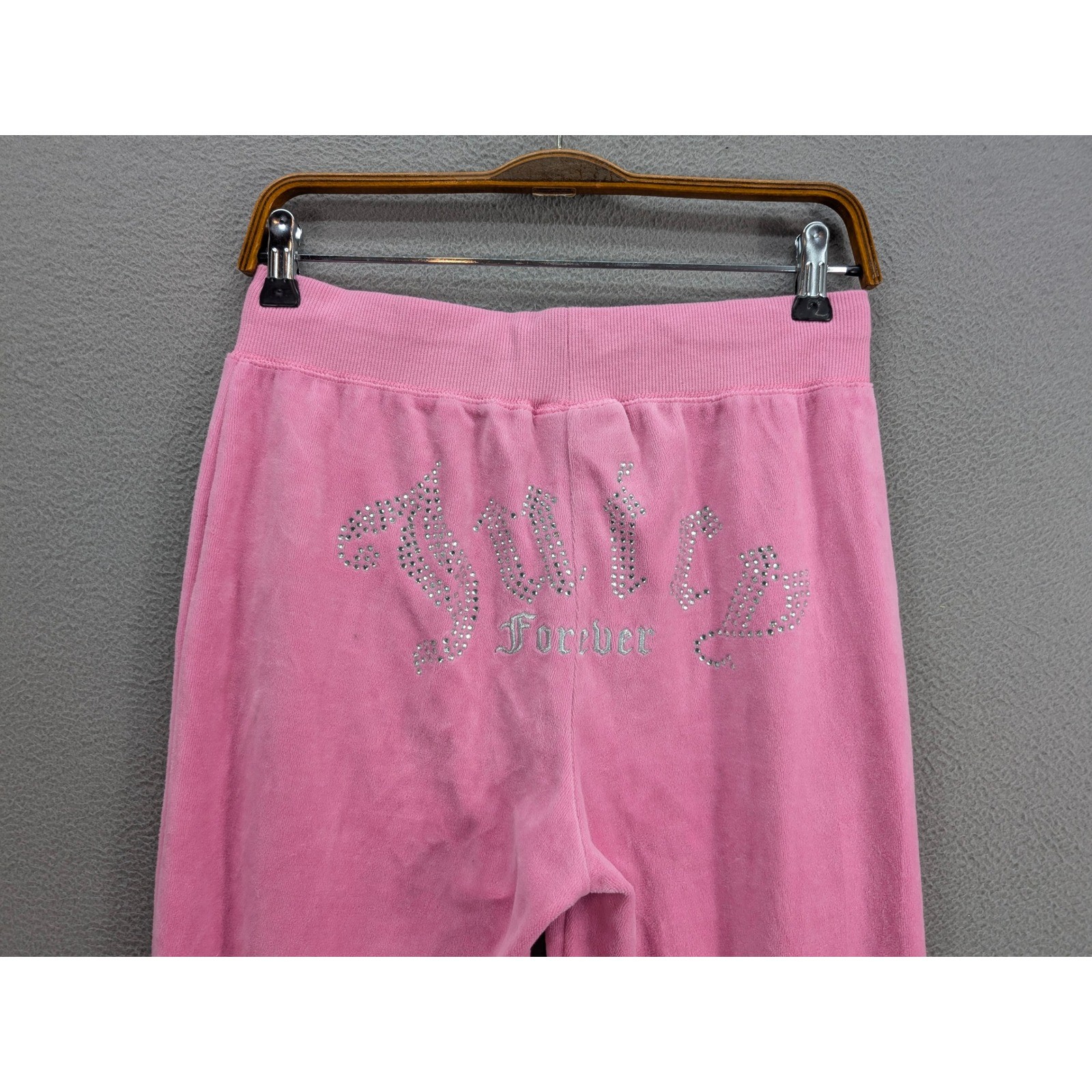Juicy Couture Velour Track Pants Women's M Pink Rhinestone Drawstring Loungewear