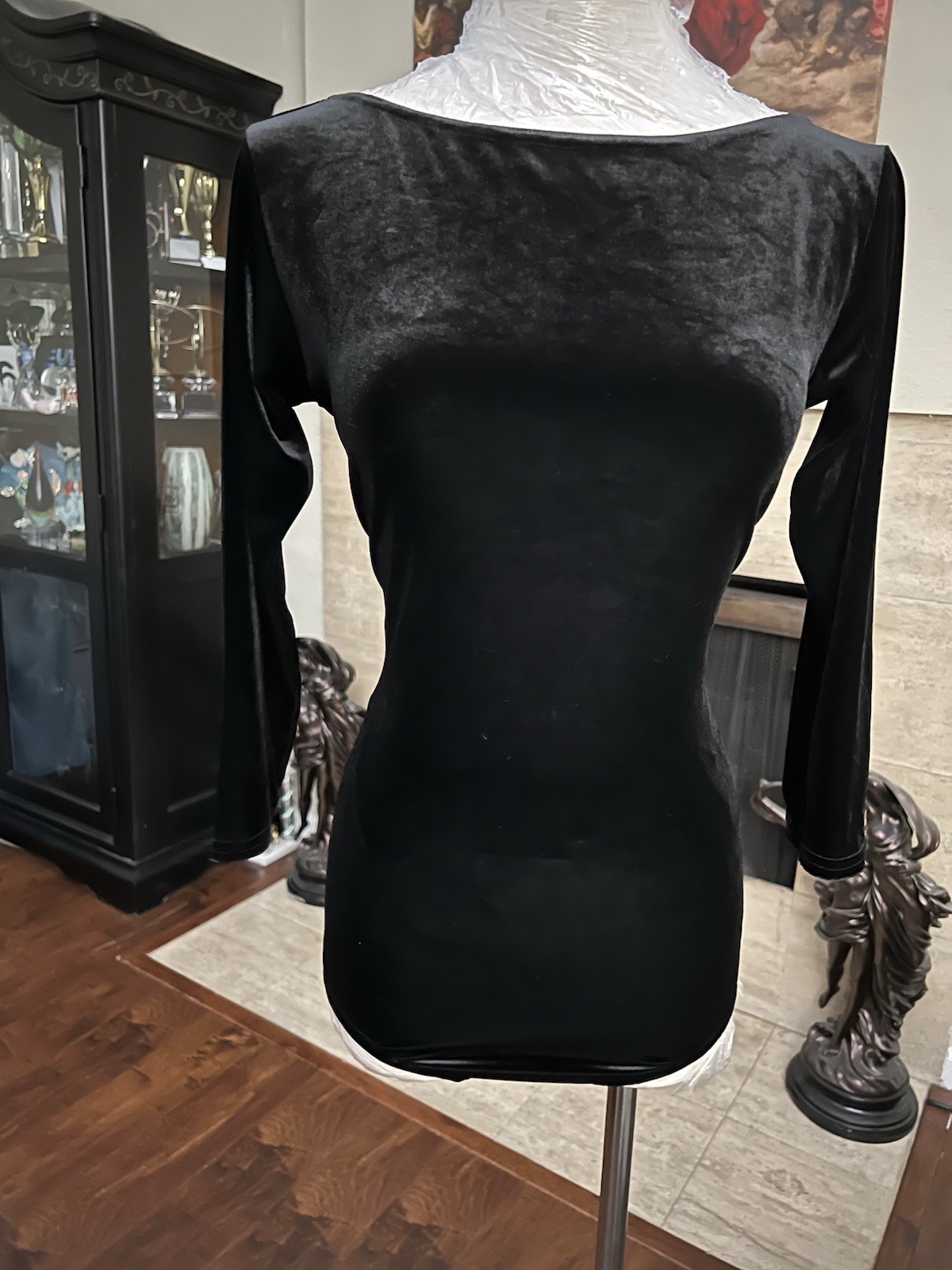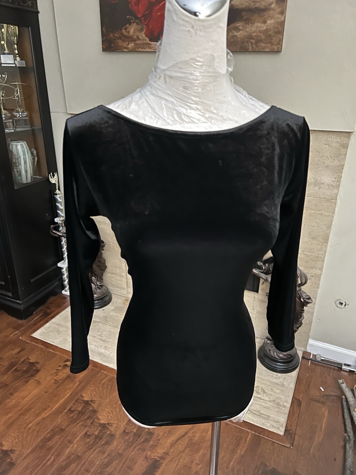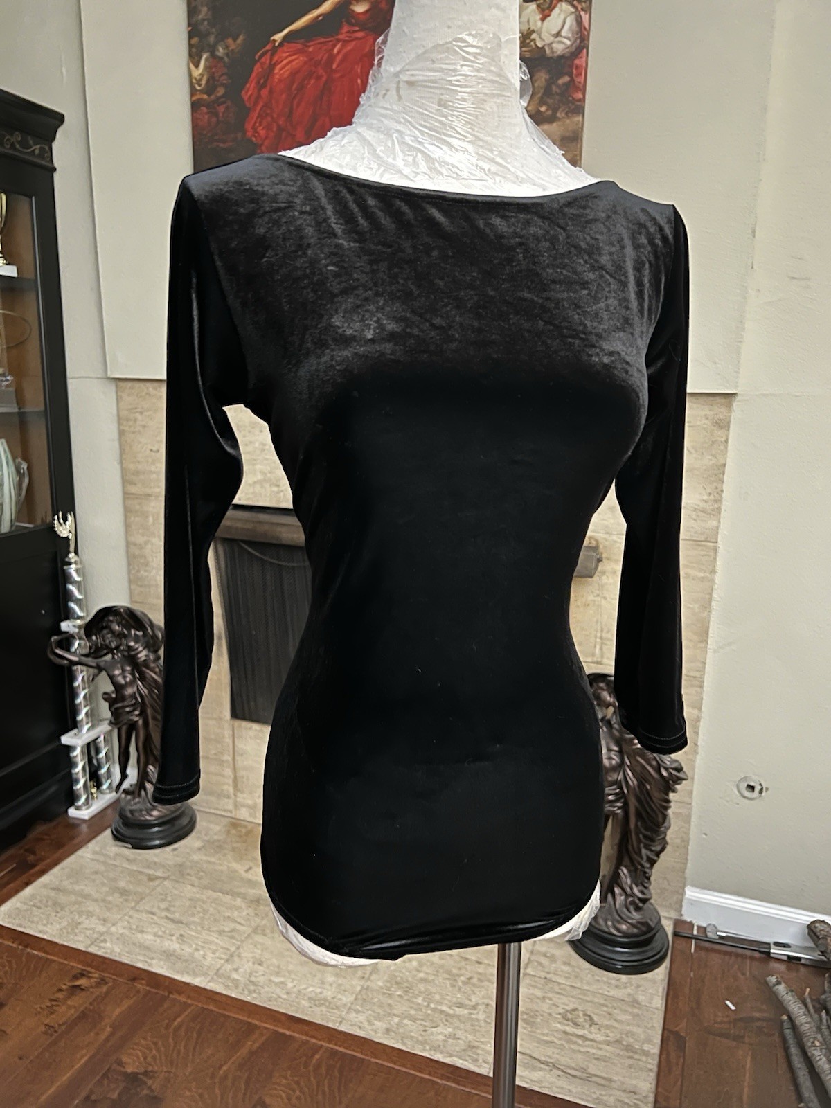 Ballroom Smooth Latin Practice Wear Bodysuit Black Velvet Size L w/Snap Buttons