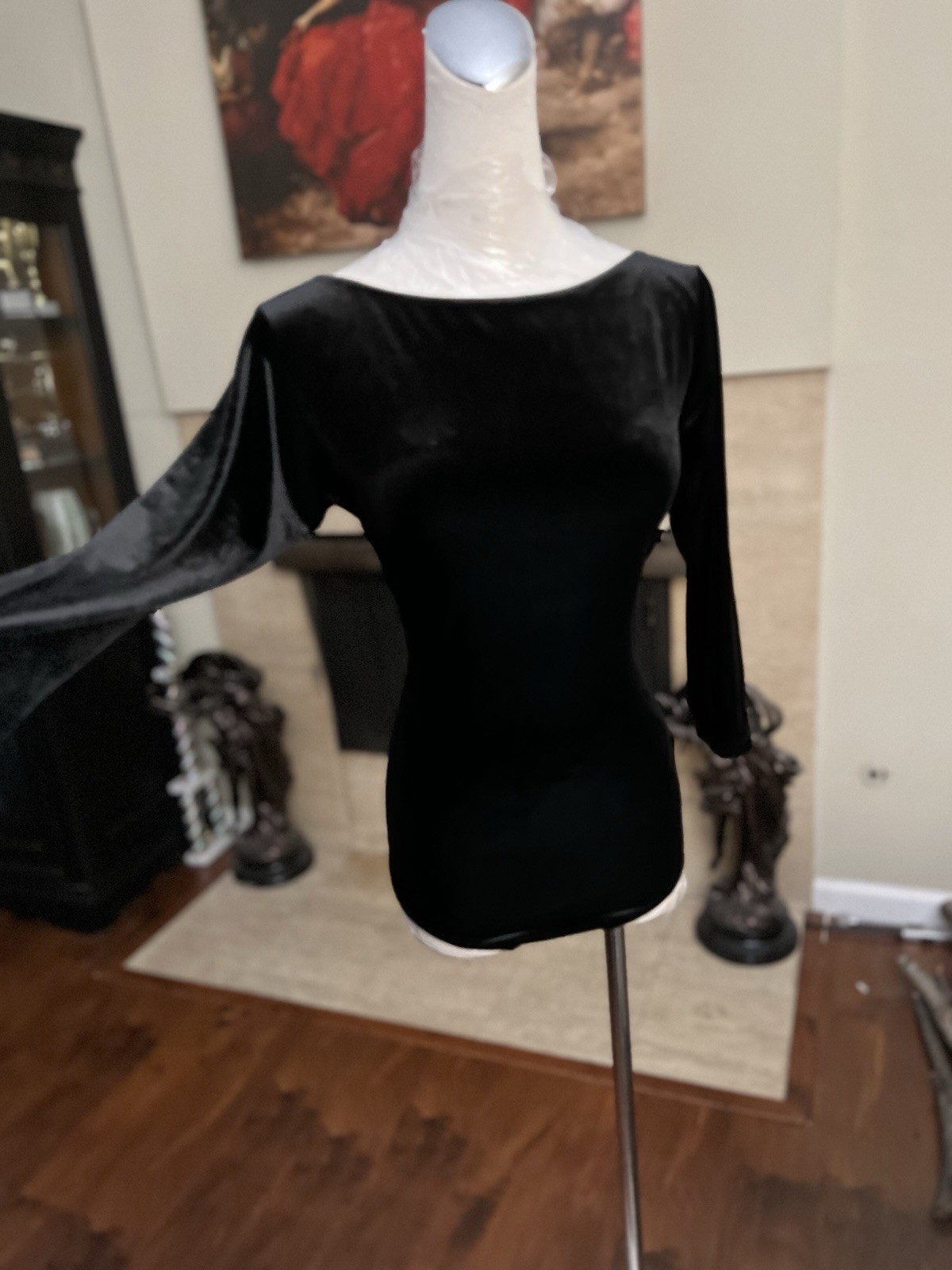 как выглядит Ballroom Smooth Latin Practice Wear Bodysuit Black Velvet Size L w/Snap Buttons фото