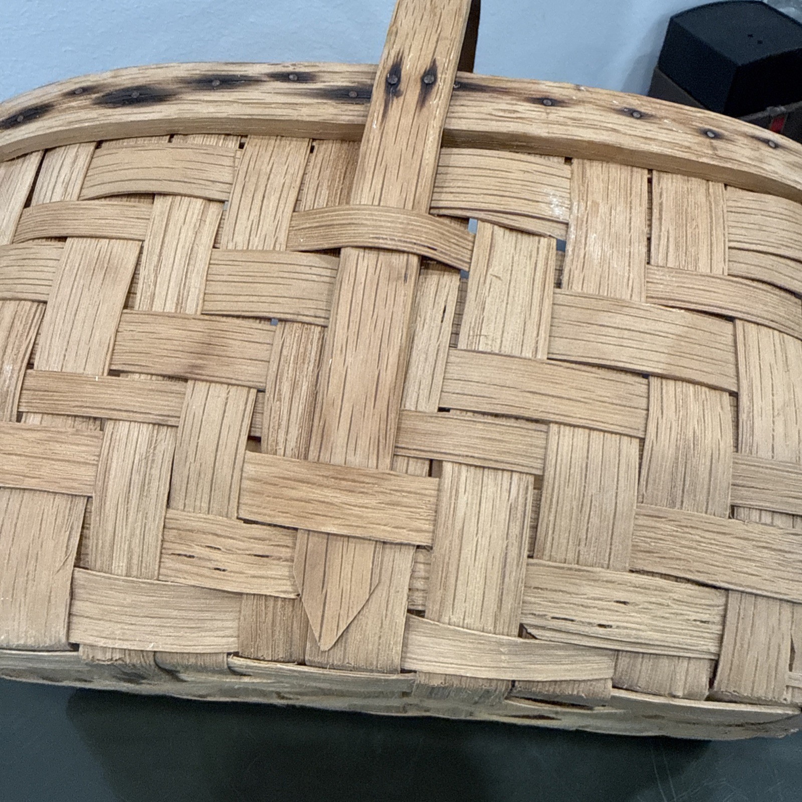 как выглядит Primitive Old 1950 s Ash Split Farmhouse Berry Egg Gathering Basket 10 X 6 X 5 фото