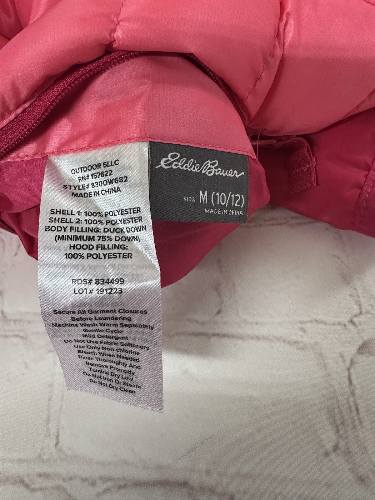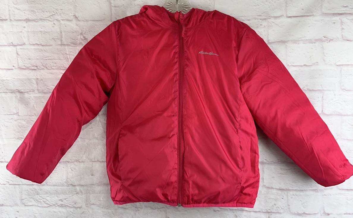 Eddie Bauer Size M 10-12 Girls Pink Down Full Zip Reversible Puffer Jacket