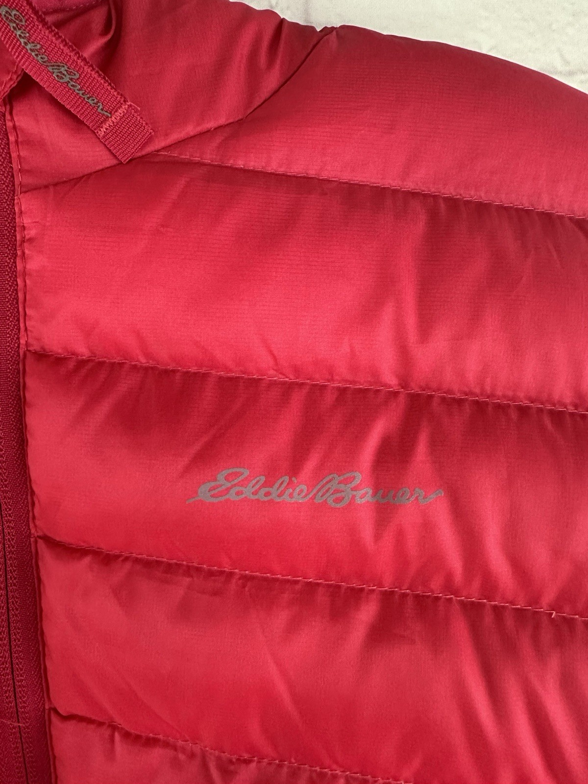 как выглядит Eddie Bauer Size M 10-12 Girls Pink Down Full Zip Reversible Puffer Jacket фото