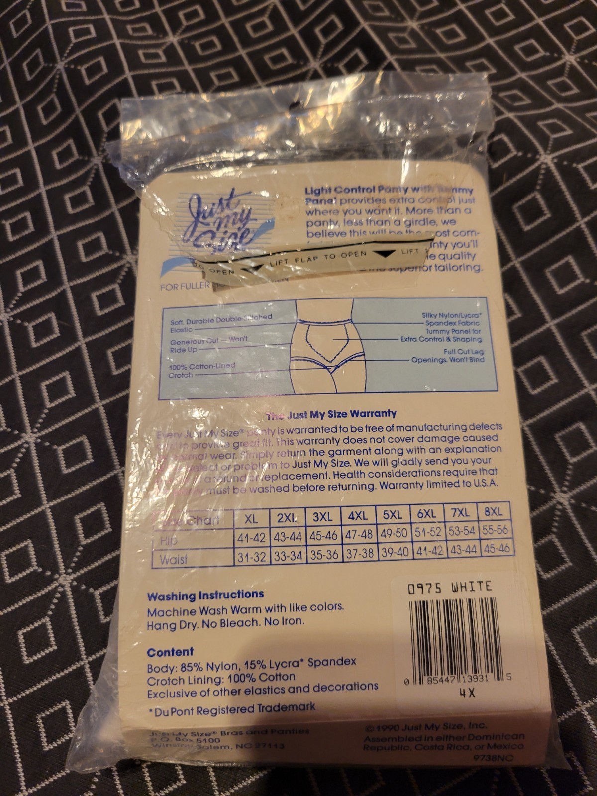 Vintage Just My Size Tummy Control Panty Brief Underwear White 4X Style 0975 NOS