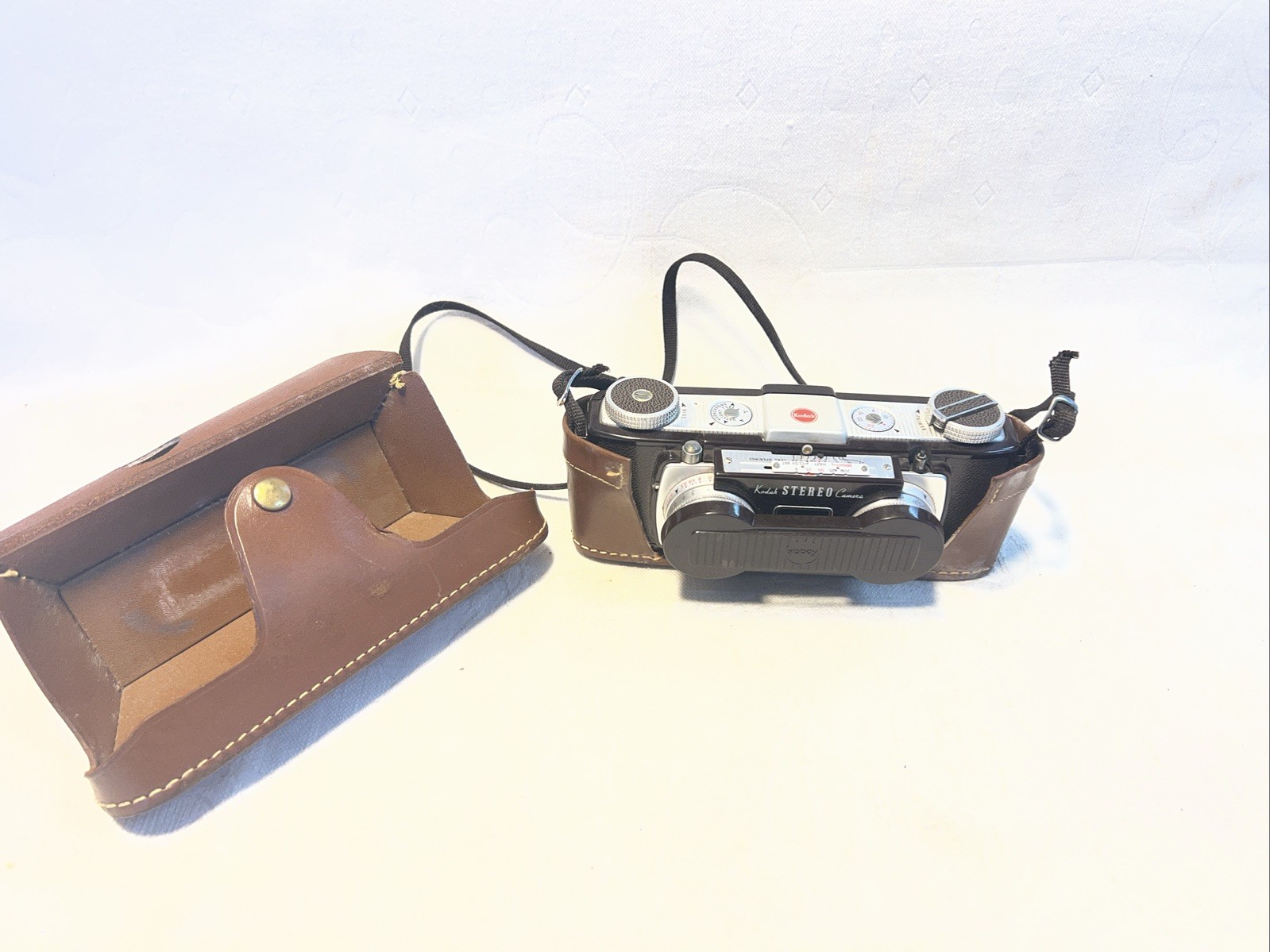 VINTAGE 1950s Kodak Stereo 35mm Film Camera w/Original Leather Case Strap