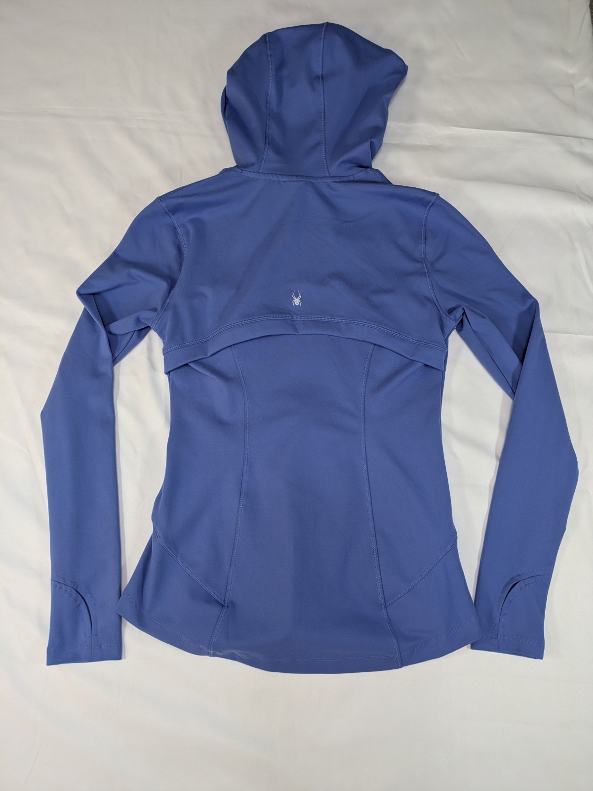 Spyder Active Womens Small Blue Full Zip Hoodie Jacket Thumbholes Stretch Sharp