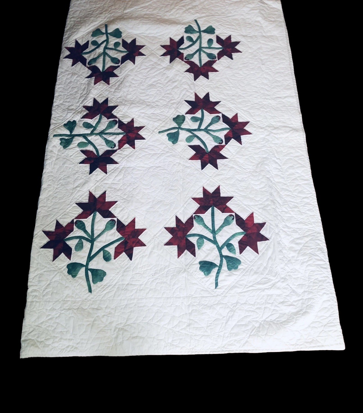 • Vintage Flower Pattern Quilt Beautiful Design Hand Stitched Hand Dyed Signed
