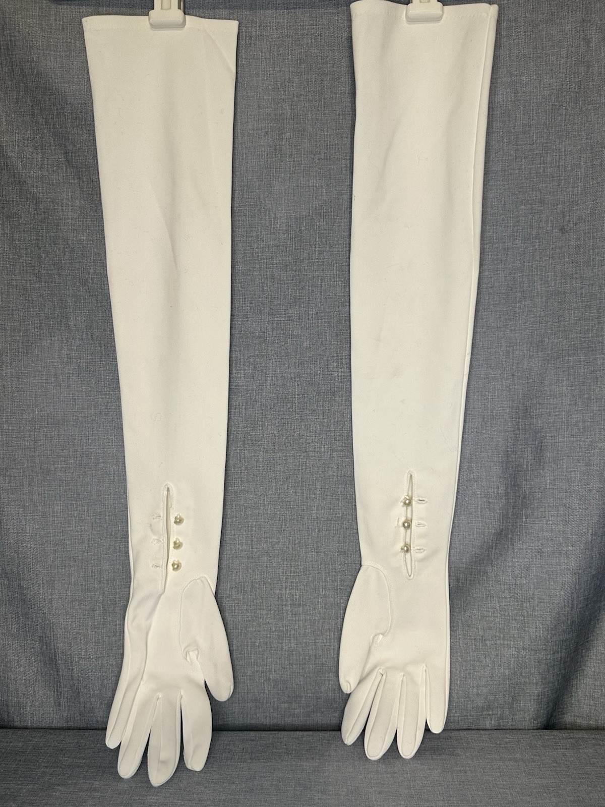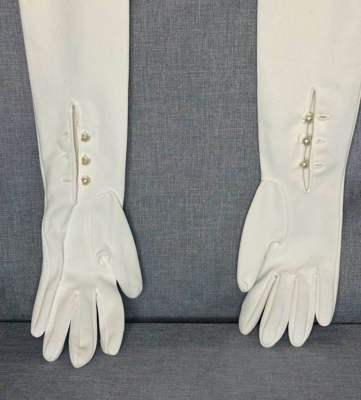 VTG white 22.5 Length faux pearl buttons full length opera gloves