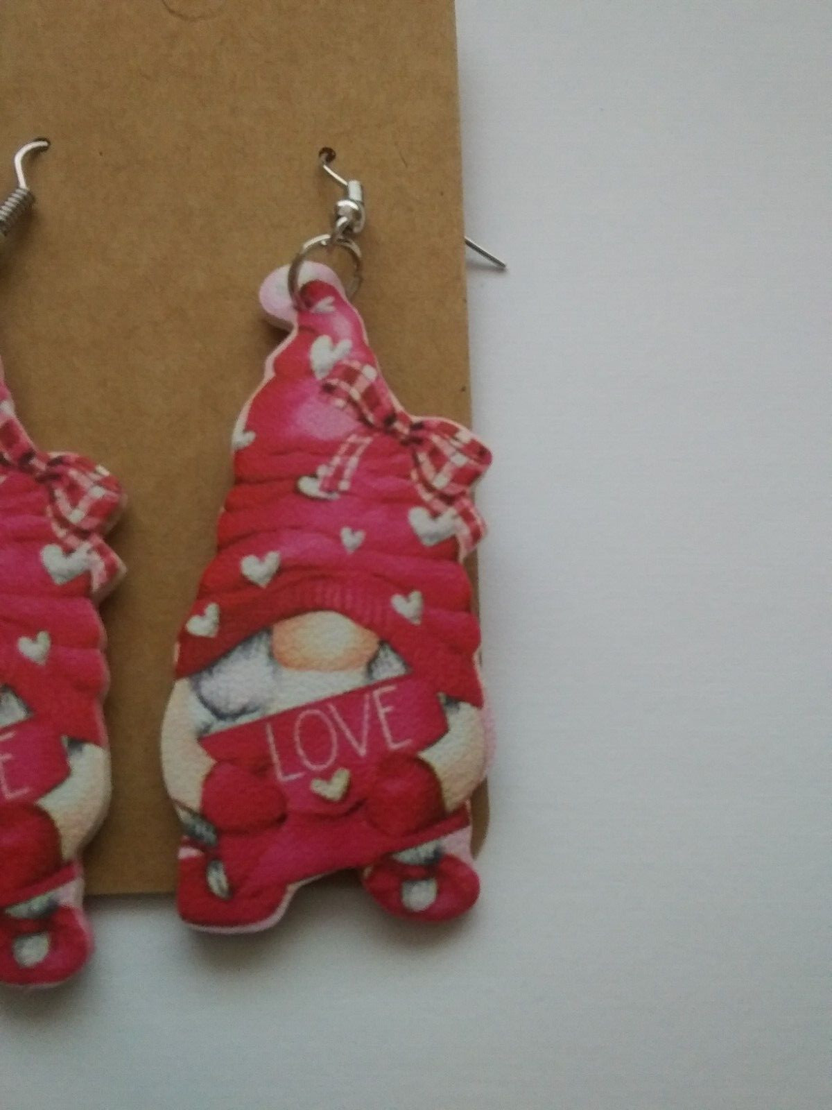 как выглядит VALENTINES DAY GNOME HOLDING LOVE SIGN FAUX LEATHER FISHOOK STYLE EARRINGS фото