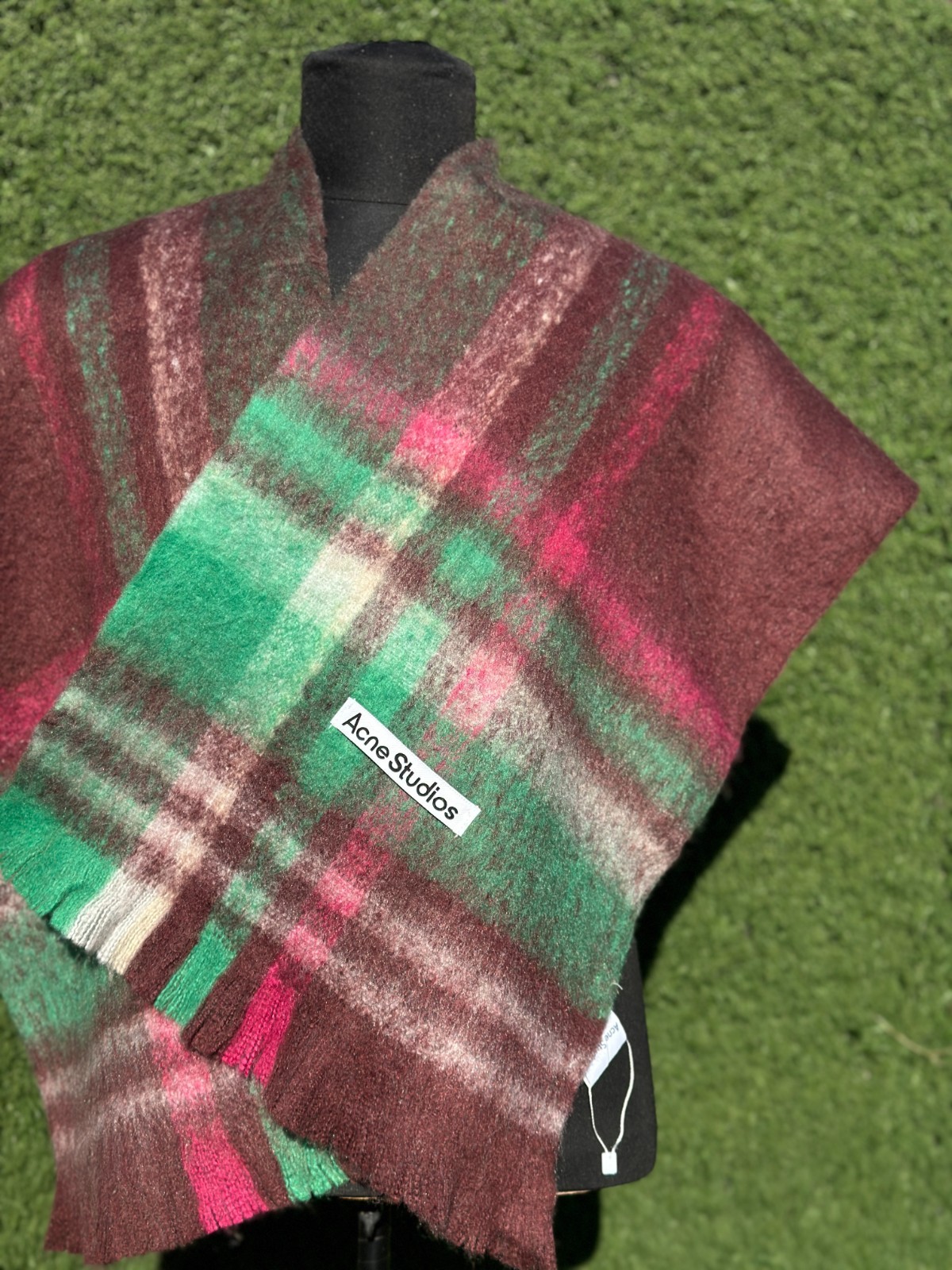как выглядит Acne Studios Oversized Mohair Alpaca Wool Plaid Scarf Italy 210x35cm фото