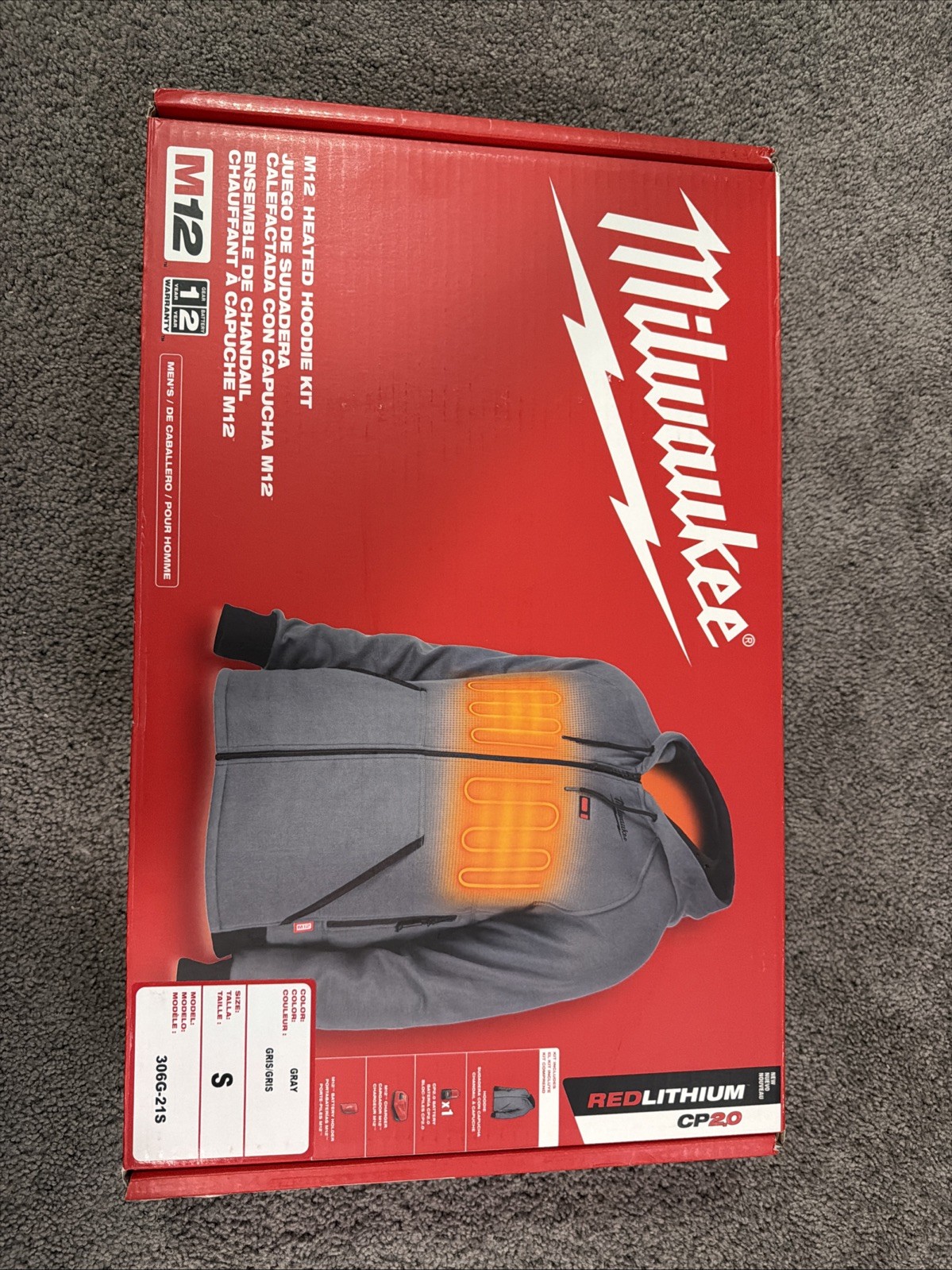 Milwaukee Heated Jacket Hoodie Kit Gray W/ Battery Charger 306G-21S Size: S