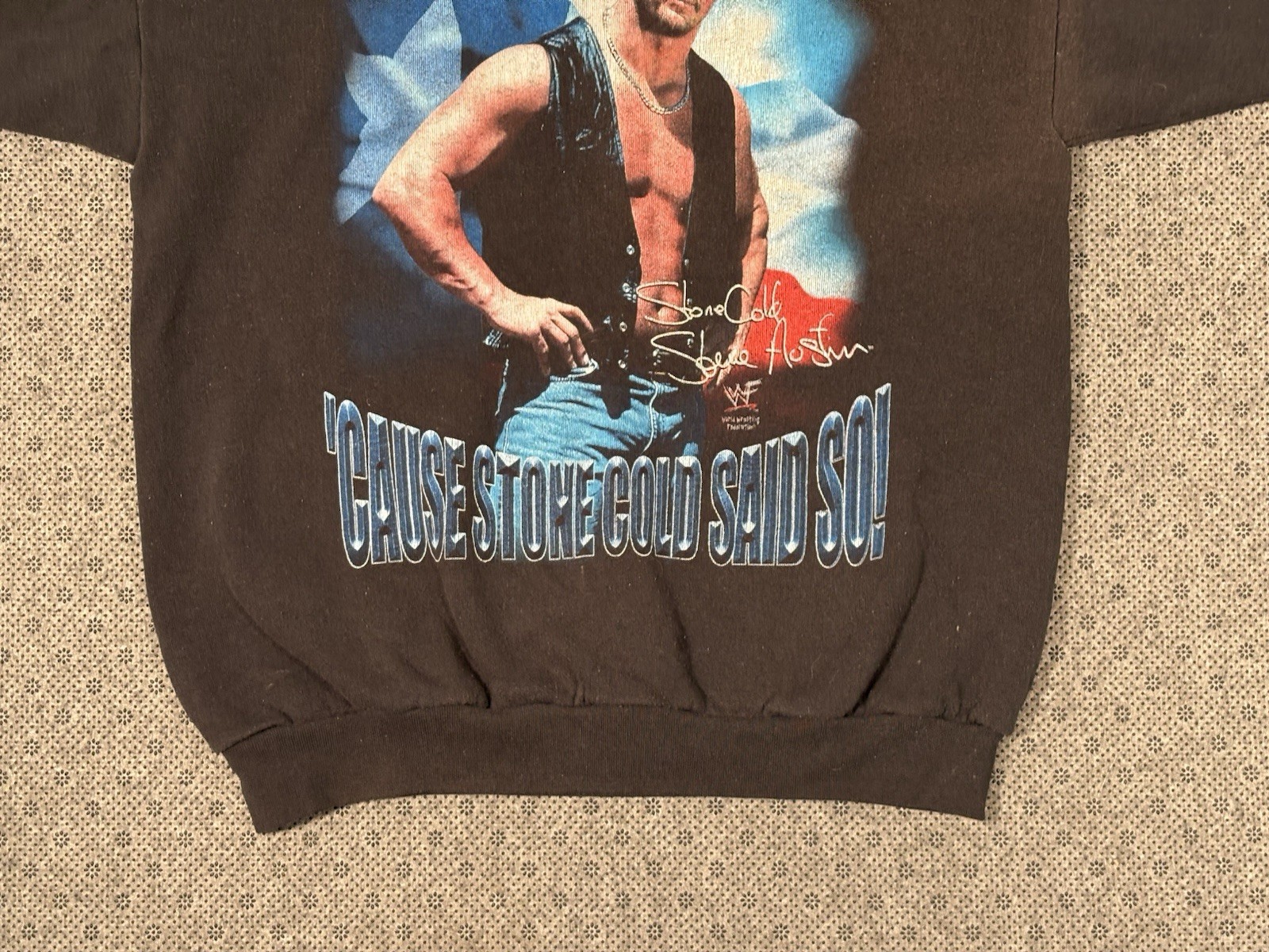 как выглядит Vintage WWF Stone Cold Steve Austin Crew Neck Sweatshirt Black Large/XL 90s RARE фото