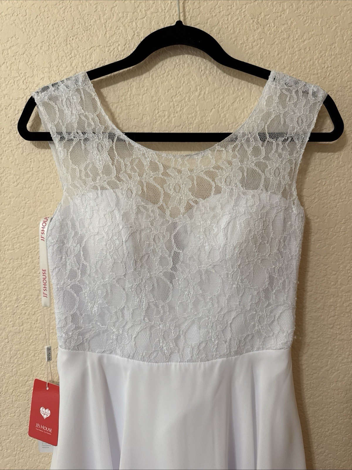 как выглядит NWT JJ s House Knee-Length Chiffon Lace Dress Sz 6 White Wedding Mother Of Groom фото