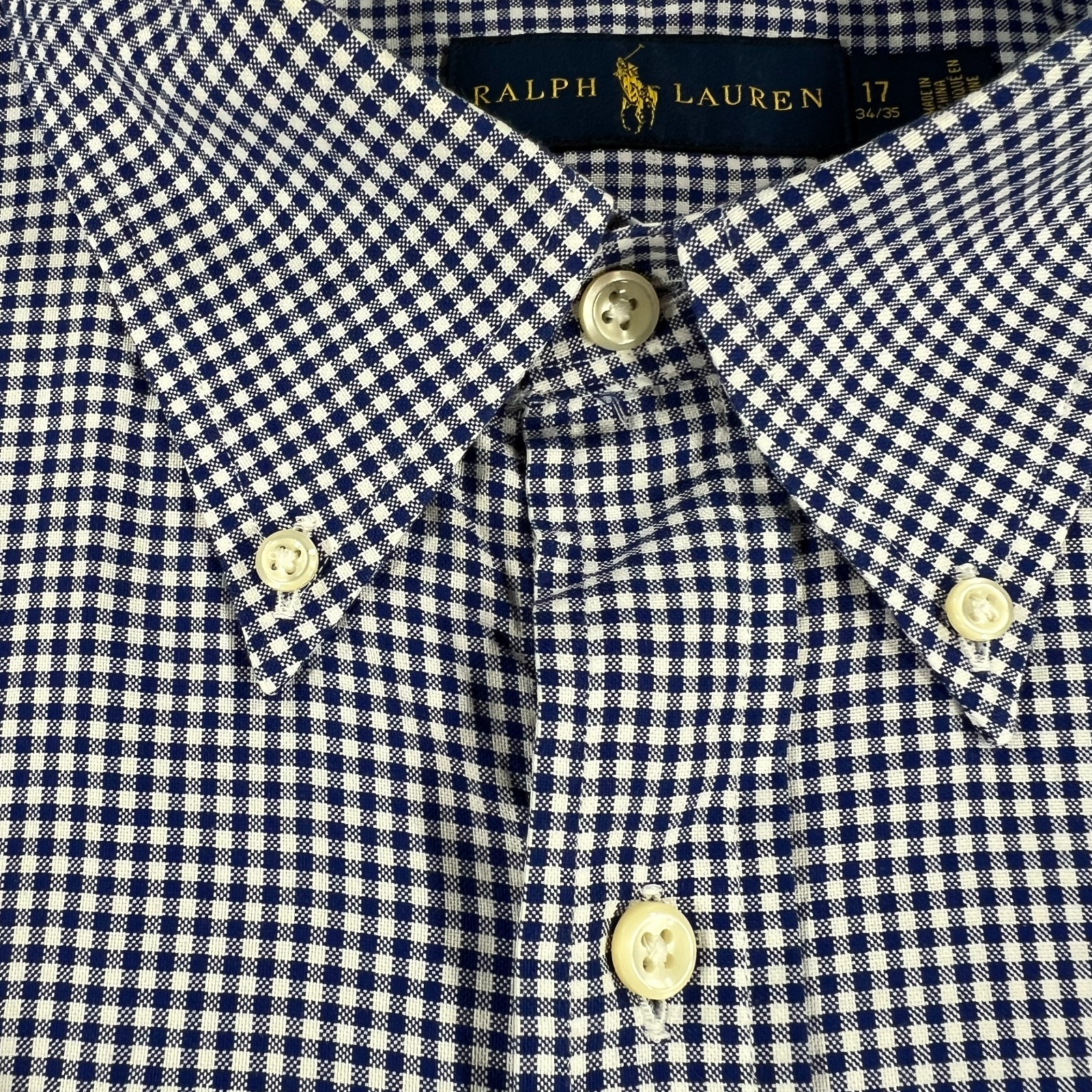 Ralph Lauren Shirt Mens Size 17 34/35 Blue Check Button Down Long Sleeve