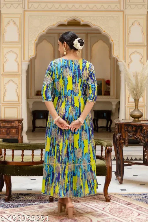 Women Embroidered Anarkali Maxi Dress Flared Ethnic Kurti Boho