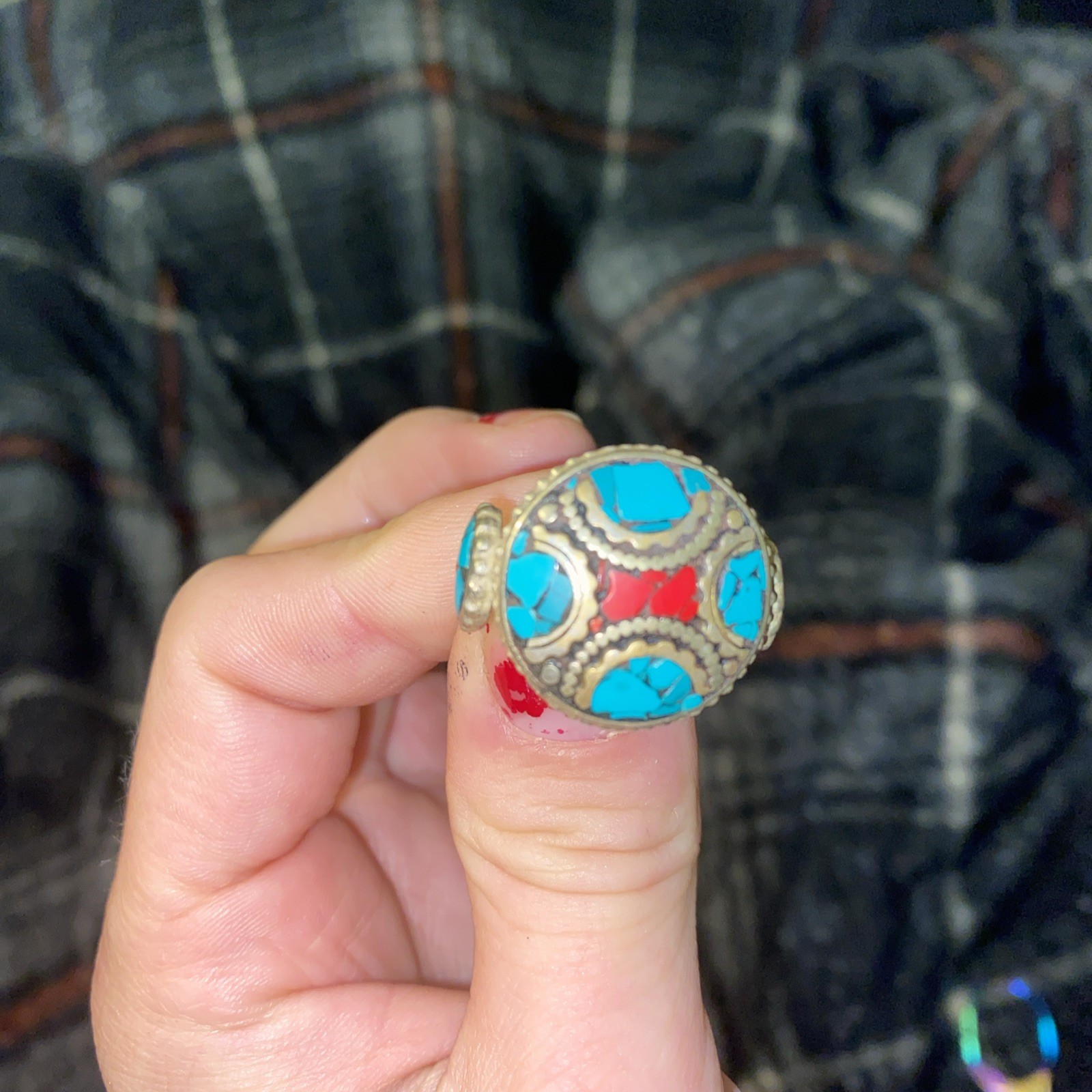Tibetan Turquoise And Coral Ring Vintage