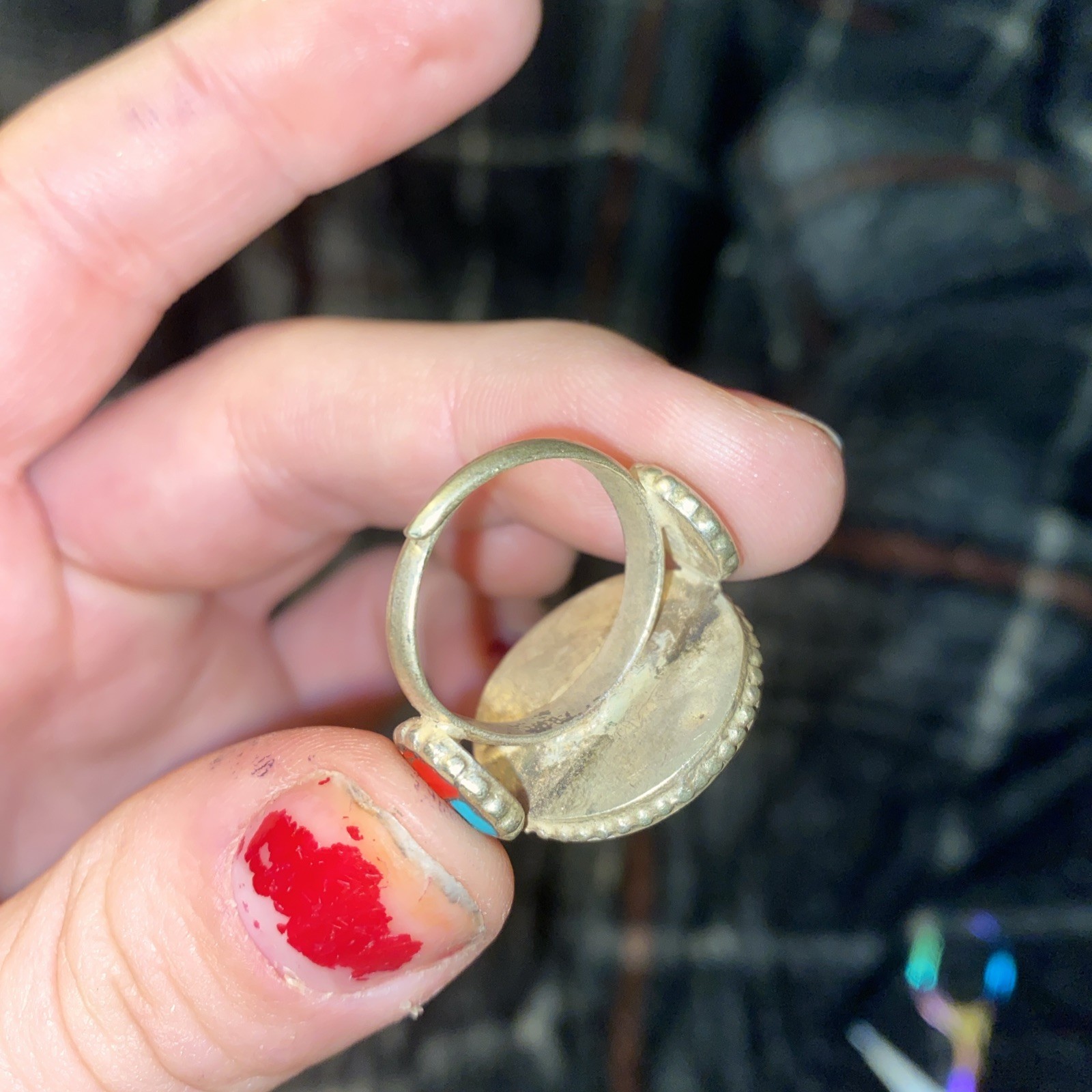 как выглядит Tibetan Turquoise And Coral Ring Vintage фото