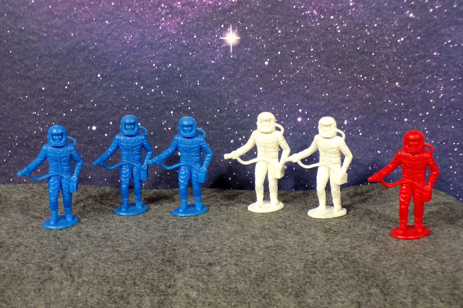 как выглядит 41 SPACE ASTRONAUTS playset MPC 1970s plastic Red White and Blue various poses фото