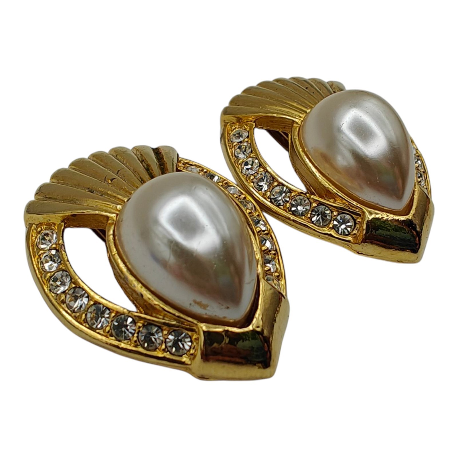 Vintage Rhinestone Gold Tone Shoe Clips Rhinestones Faux Pearls