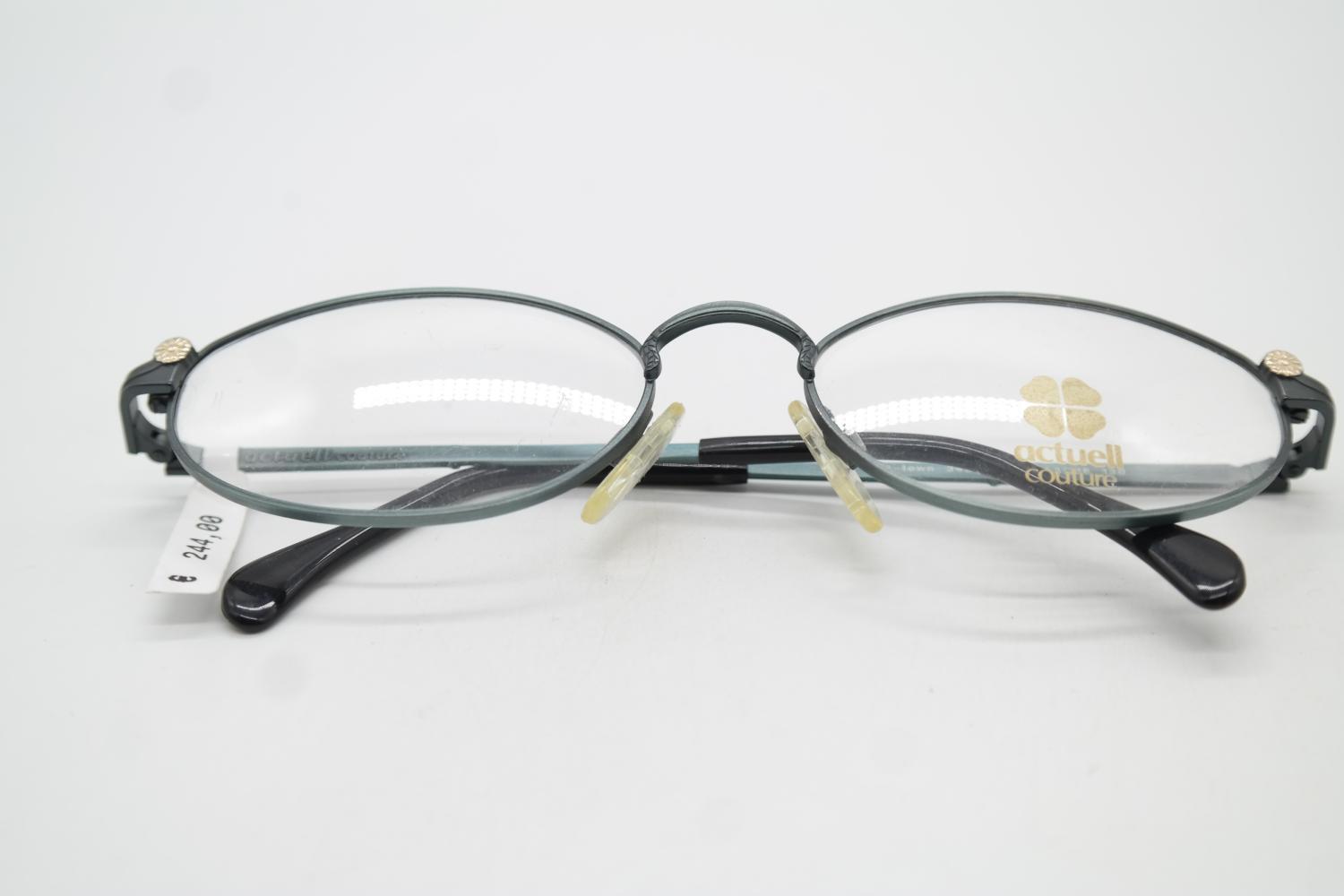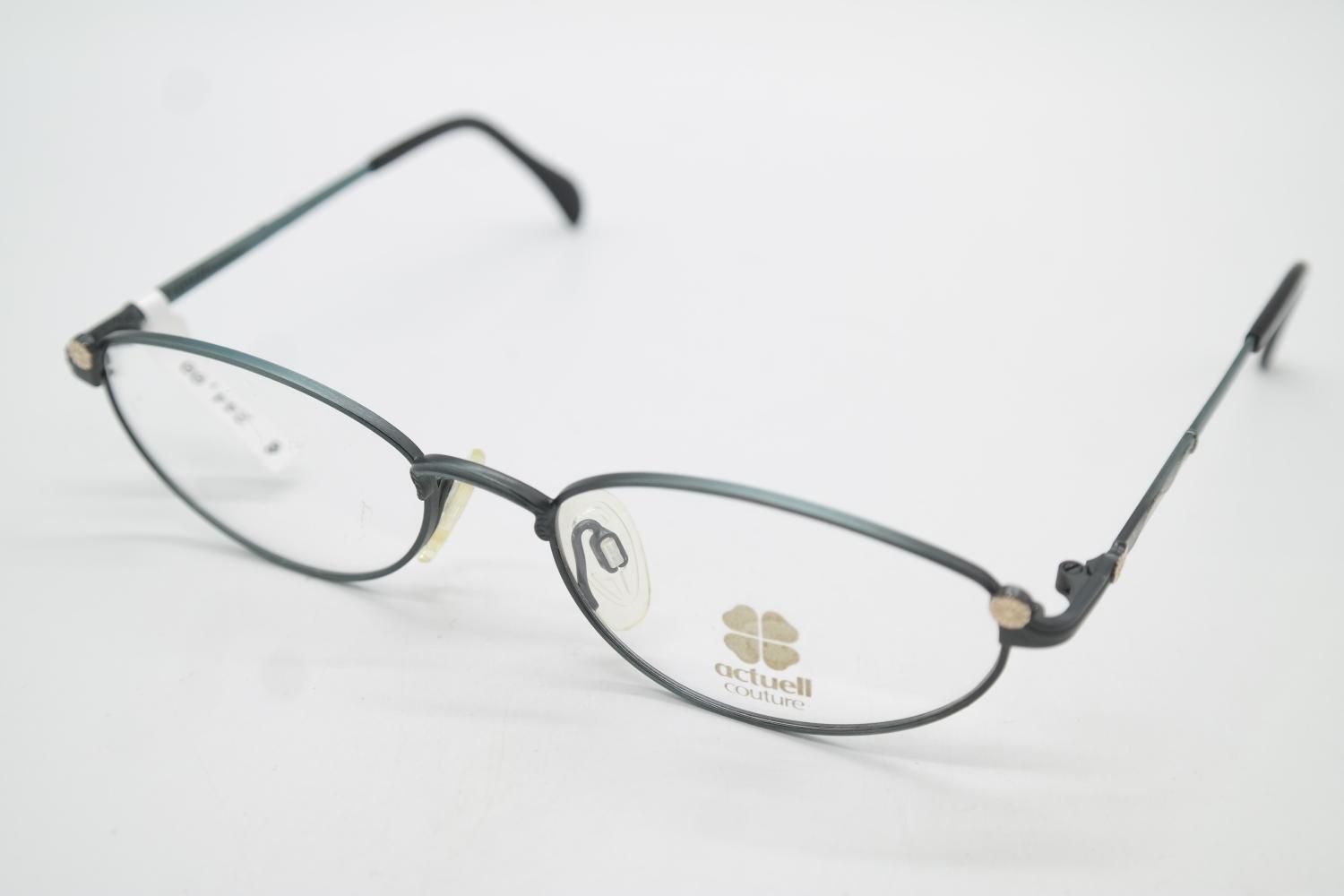 Vintage Actuell Couture Up-town 343 Green Gold Oval Glasses Frame NOS