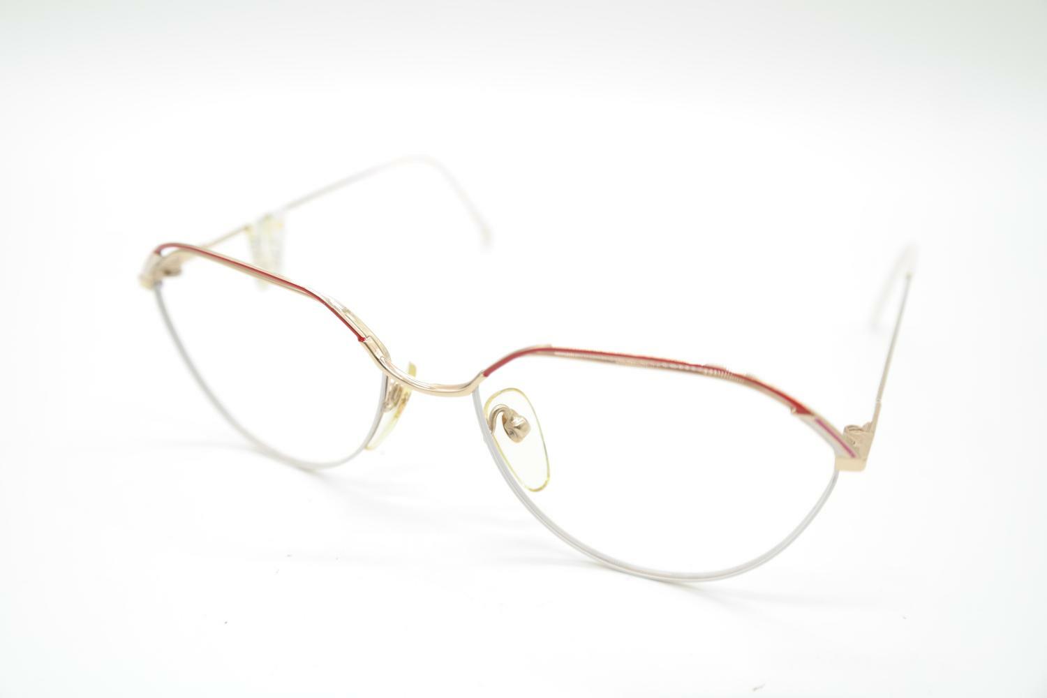 как выглядит Vintage Actuell Couture 523 Gold Red White Oval Glasses Eyeglass Frame NOS фото