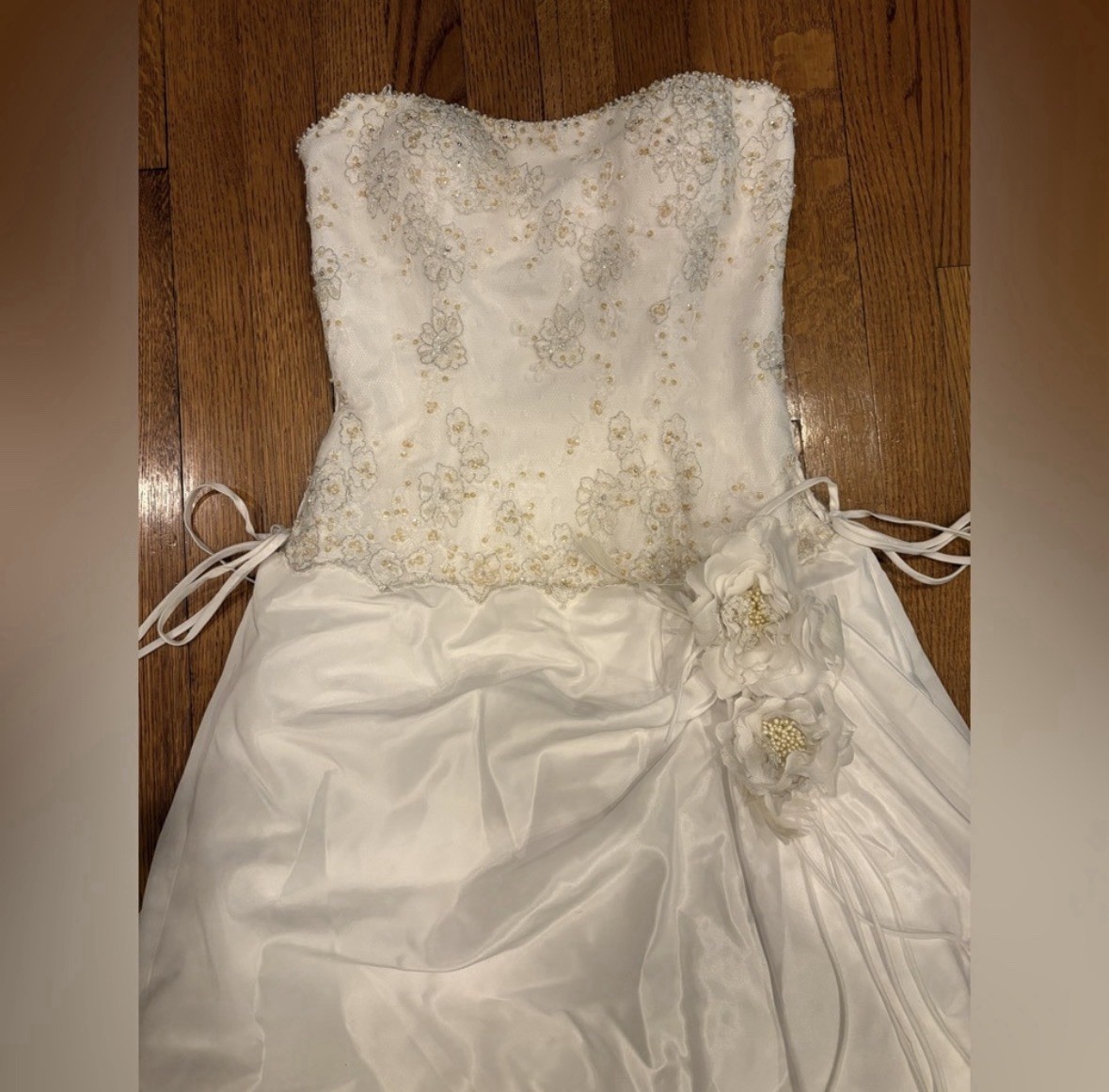 как выглядит Vintage Strapless Wedding Gown  Early 2000s Corset Bridal Dress with Train фото