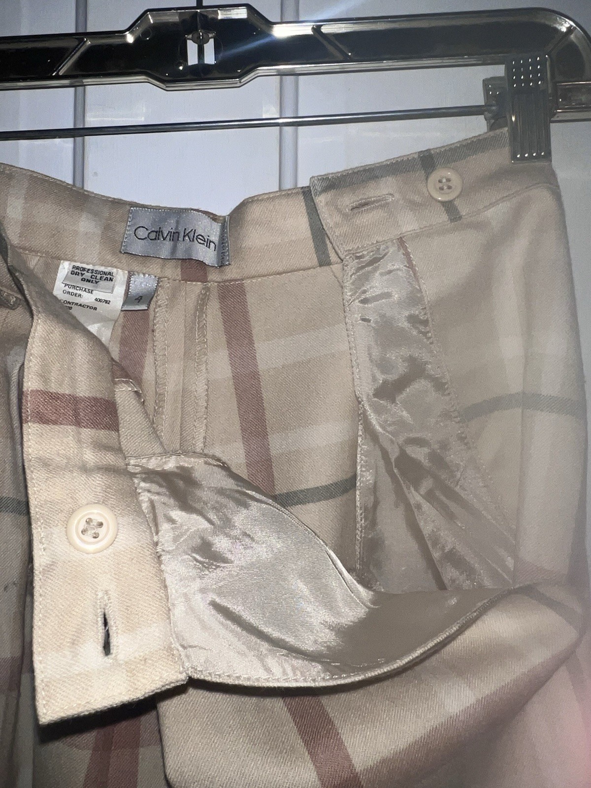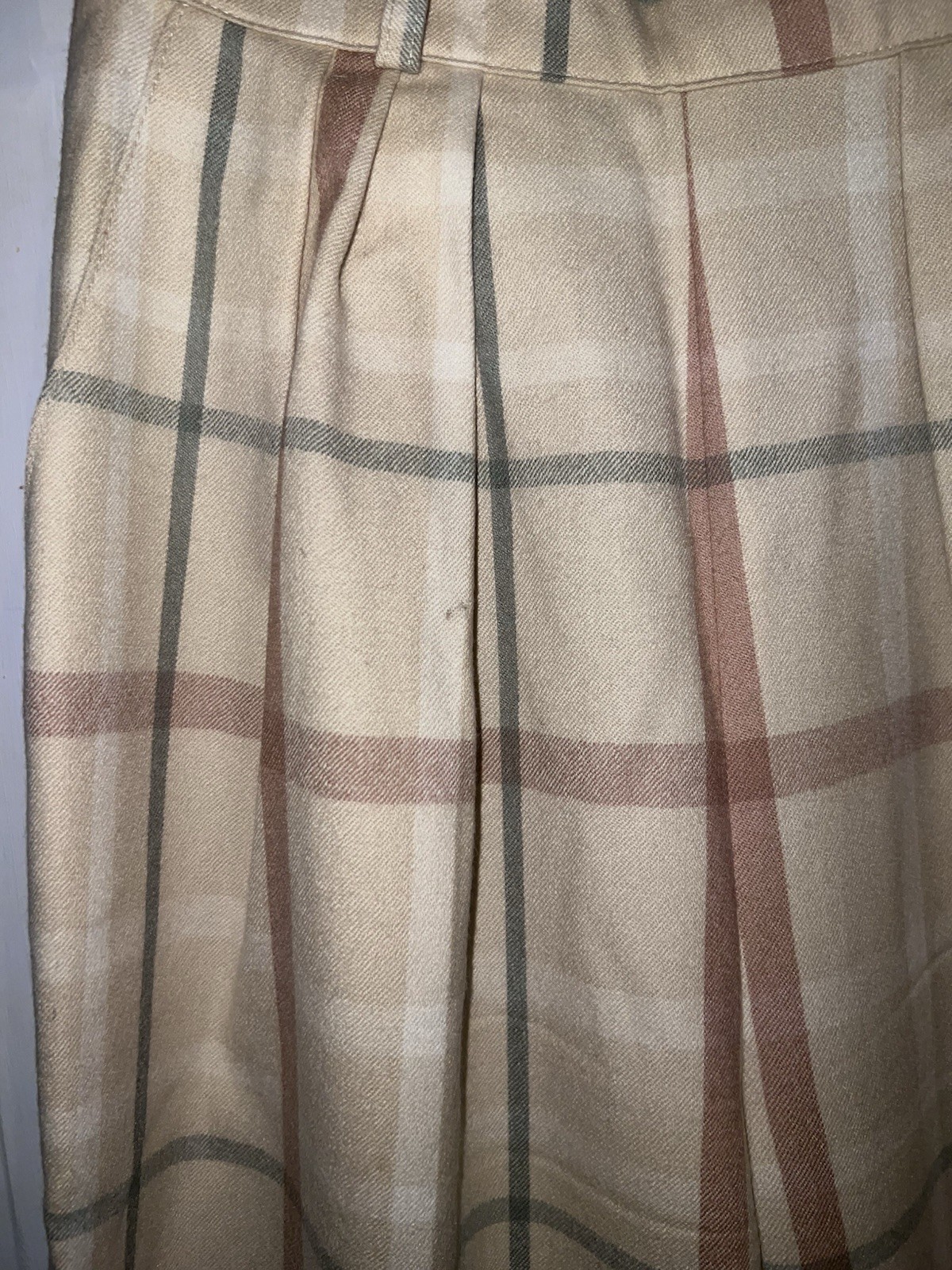 как выглядит Vintage 70s Calvin Klein Cream Plaid Wool High Waist Straight Leg Pants Sz XS S фото