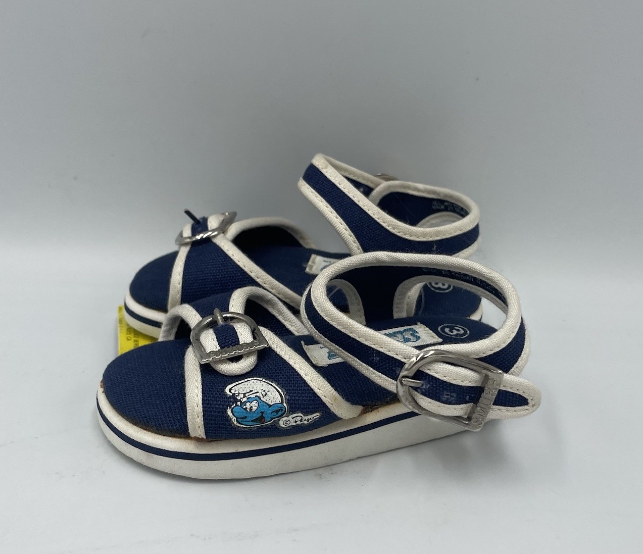 Vintage 1982 Smurf Baby Shoes Size 3 Sandals Peyo Buckles Blue