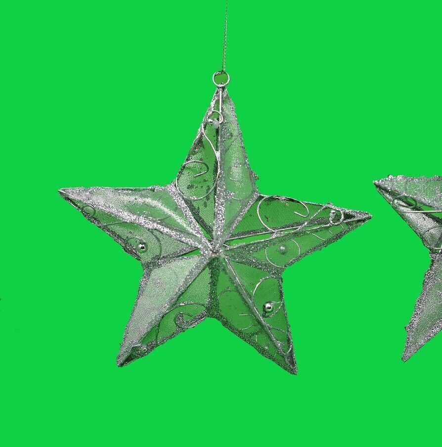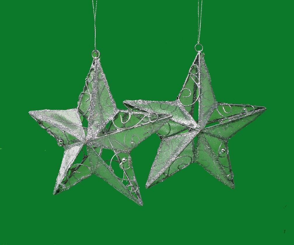 Set of 2 large Silver Glitter Wire Metal scroll 3D Star Christmas Tree Ornament