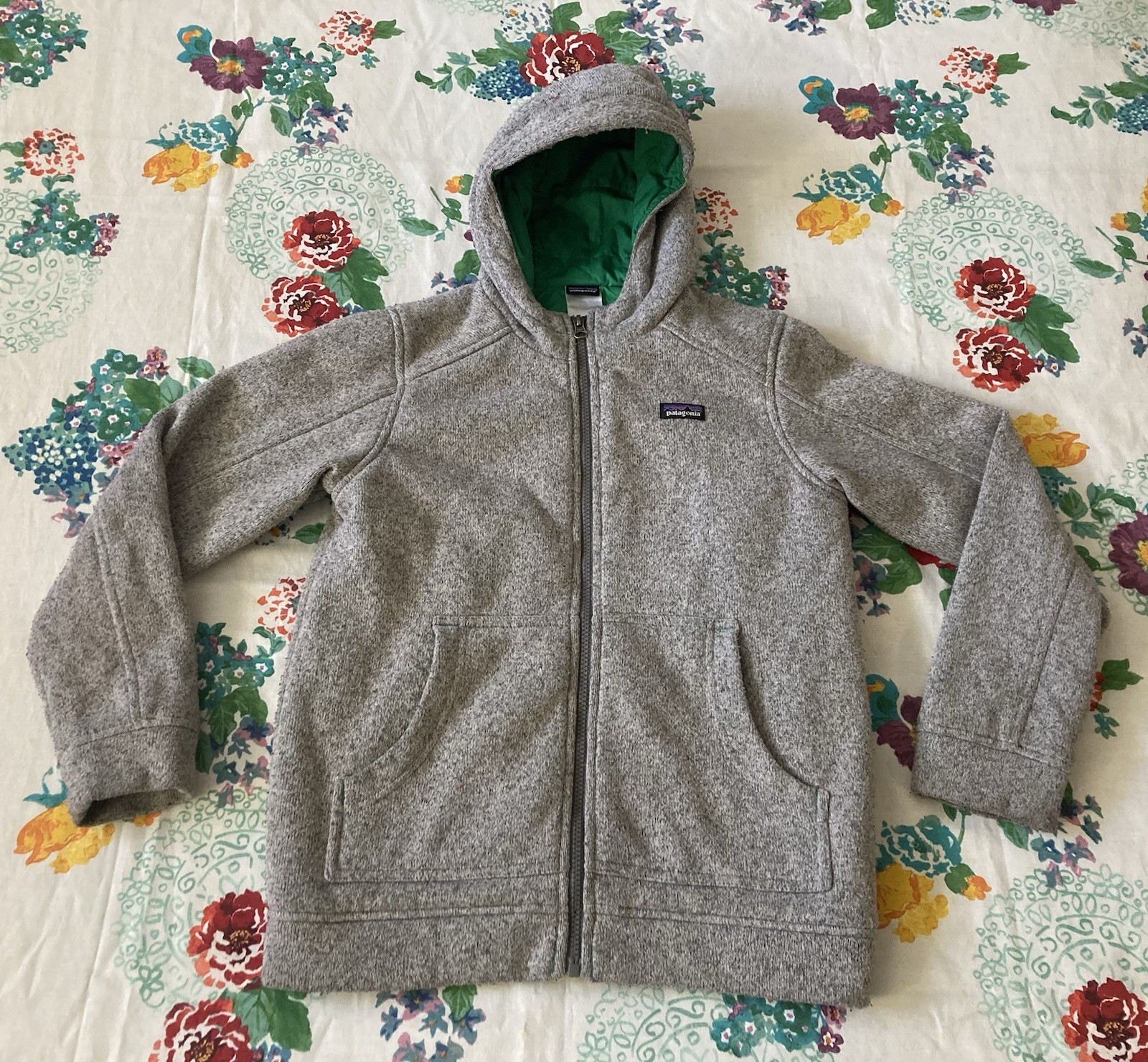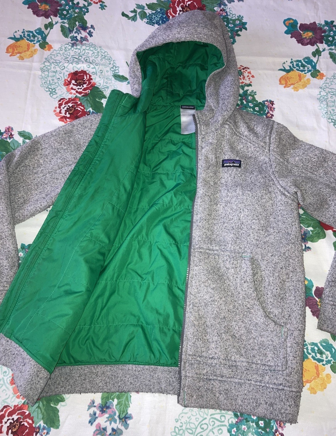 VTG Patagonia Jacket Boys Large Full Zip Sweater Knit Outdoors Hooded Lined