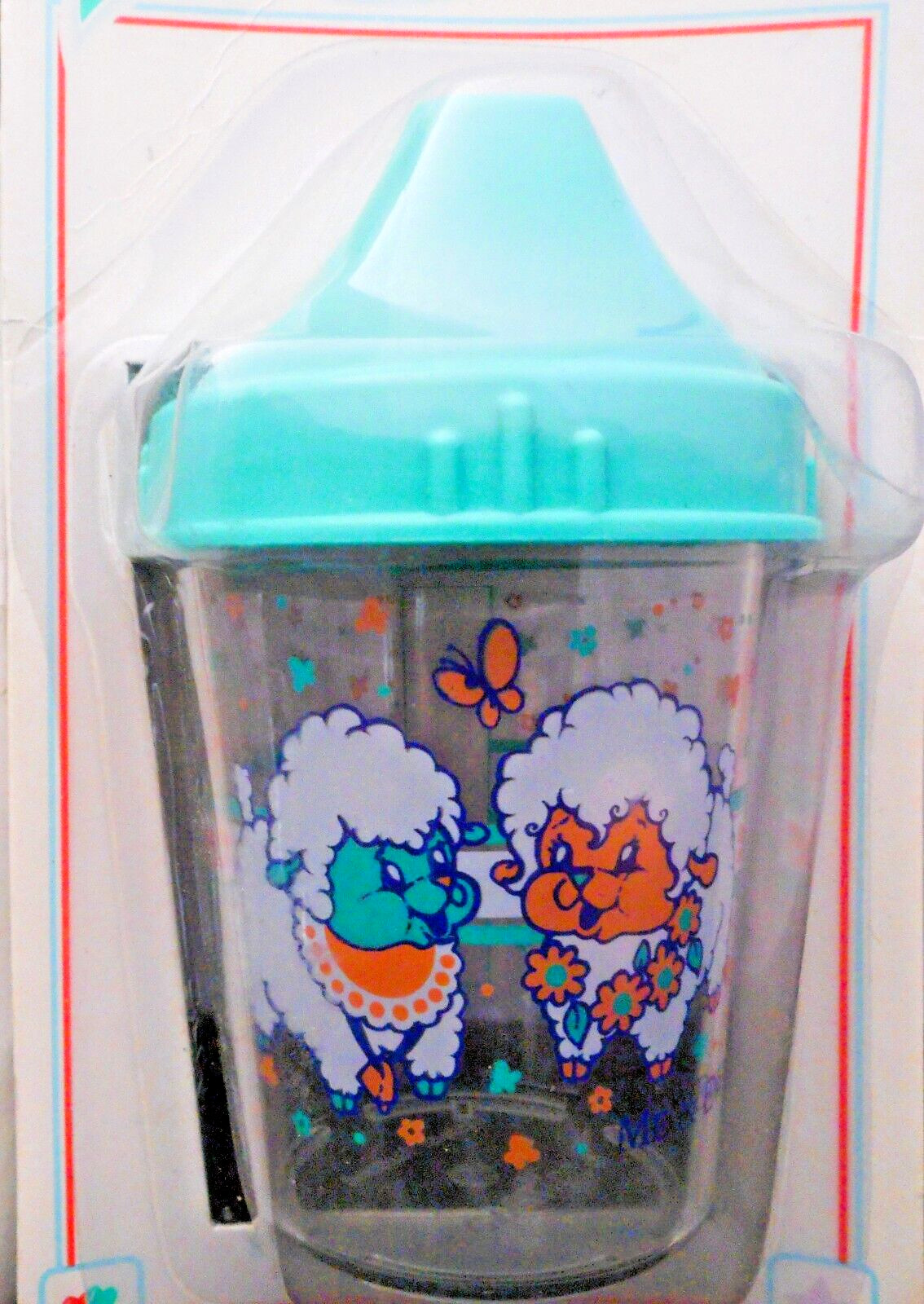 1990s NWT Evenflo Baby Training Sippy Cup-Juice Cup-Green Lid White Sheep Vtg 1