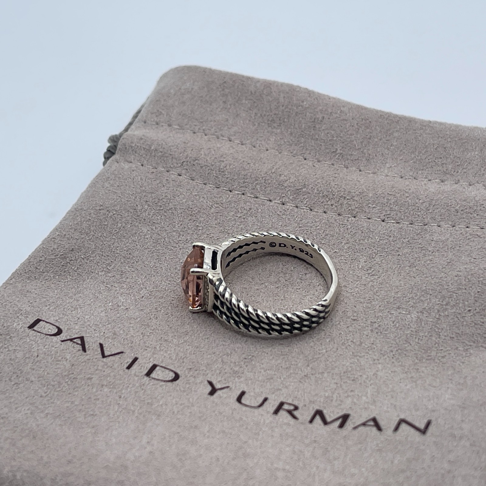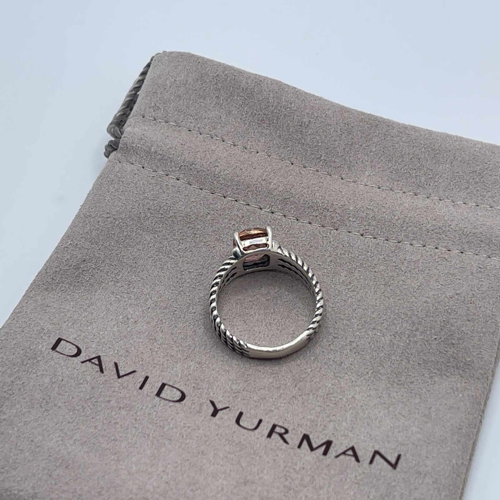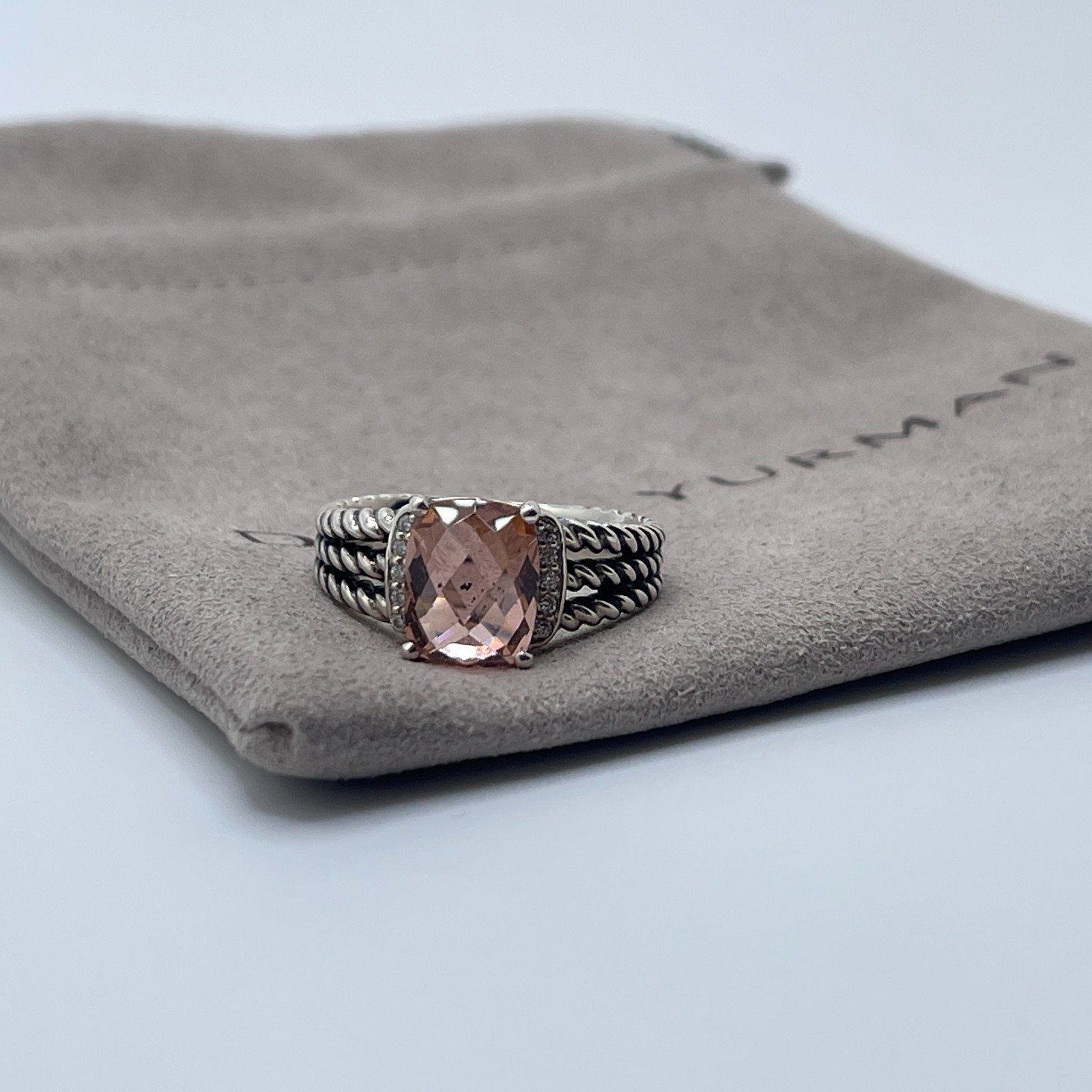 как выглядит David Yurman Sterling Silver Petite Wheaton Ring Morganite Diamonds Size 5 фото