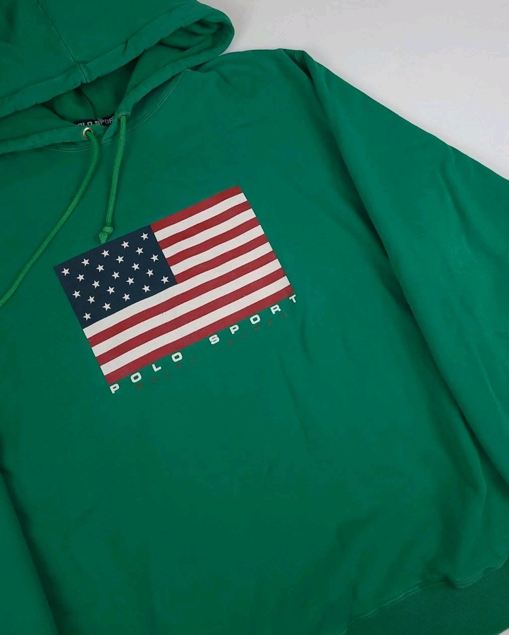 Vintage 90s Polo Sport Ralph Lauren USA Flag Hoodie Green L Rare American RL Vtg