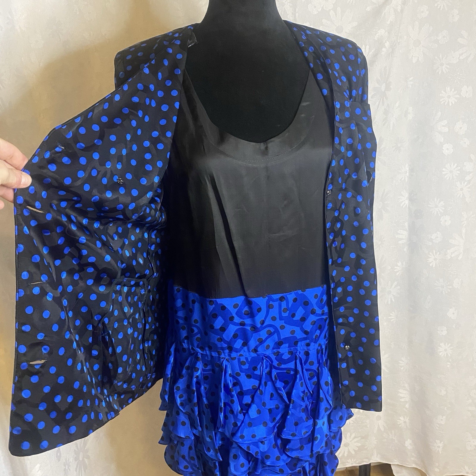 как выглядит Vintage A.J. Bari Women s Silk Suit Dress Double Breasted Polka Dot 80 s Sz 2 фото