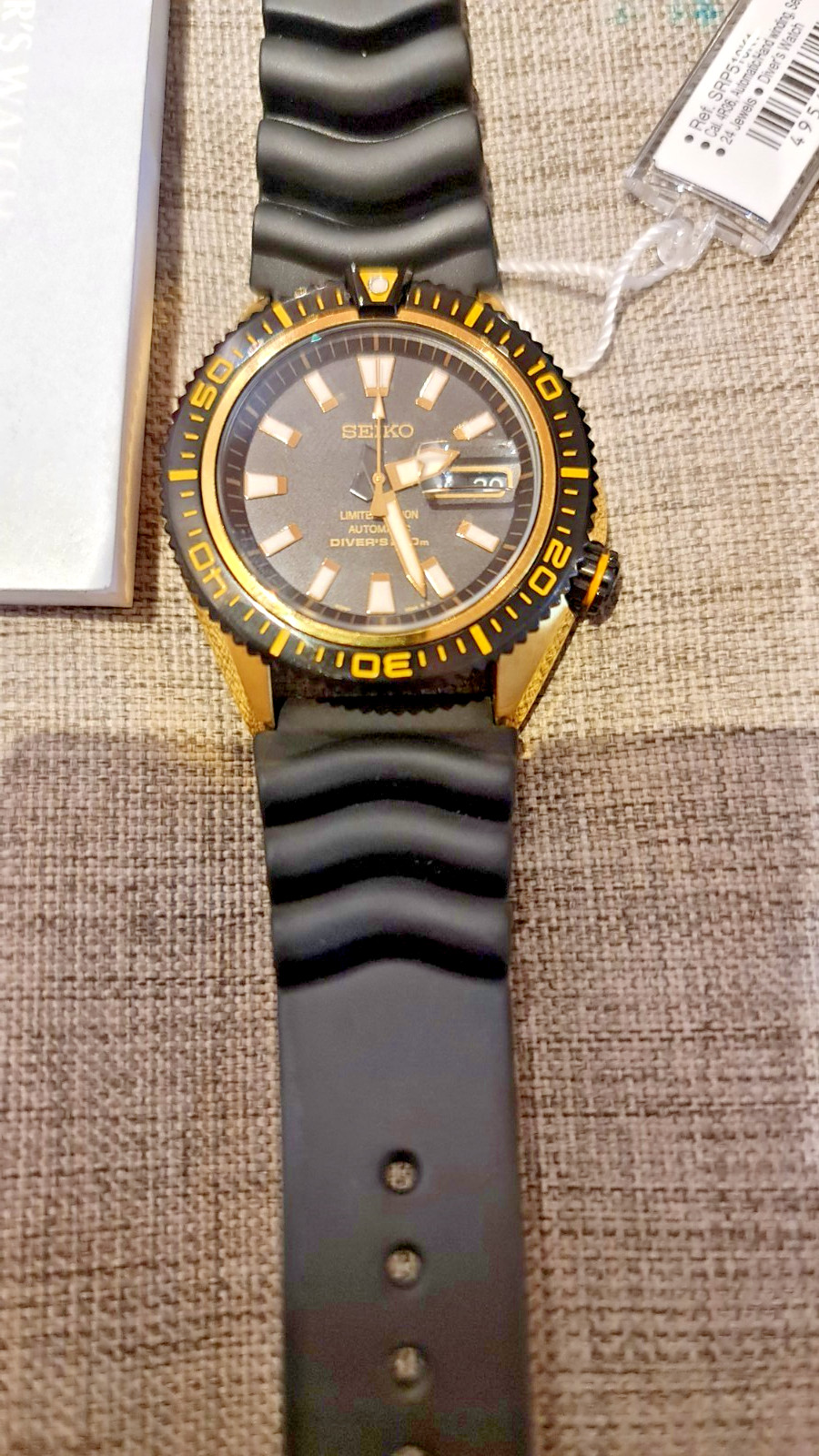 как выглядит SEIKO STARGATE II SRP510K1 Superior Gold Black Limited Diver Watch Rubber 200m фото