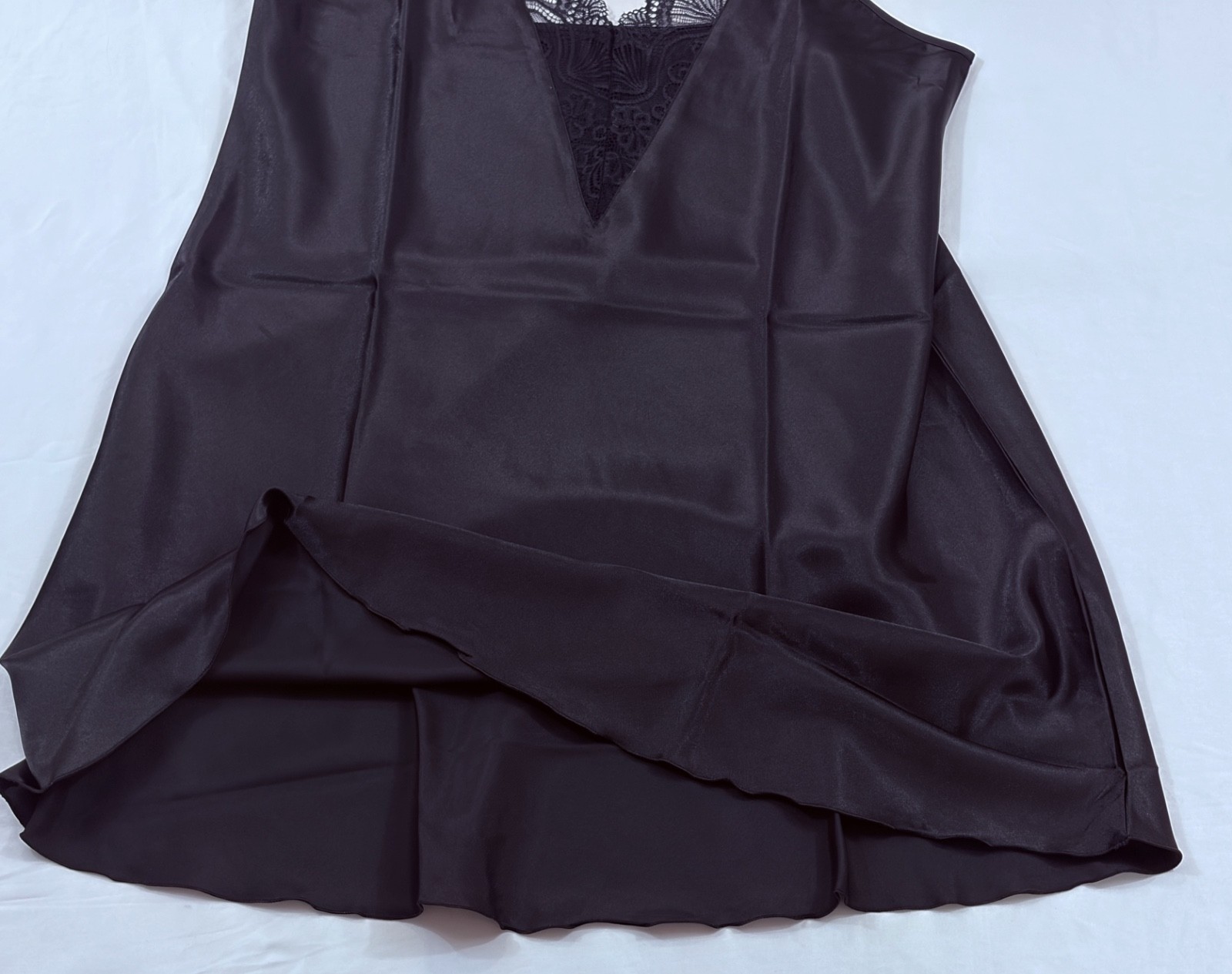women's black satin slip dress size XL adjustable straps lace v-neck polyester