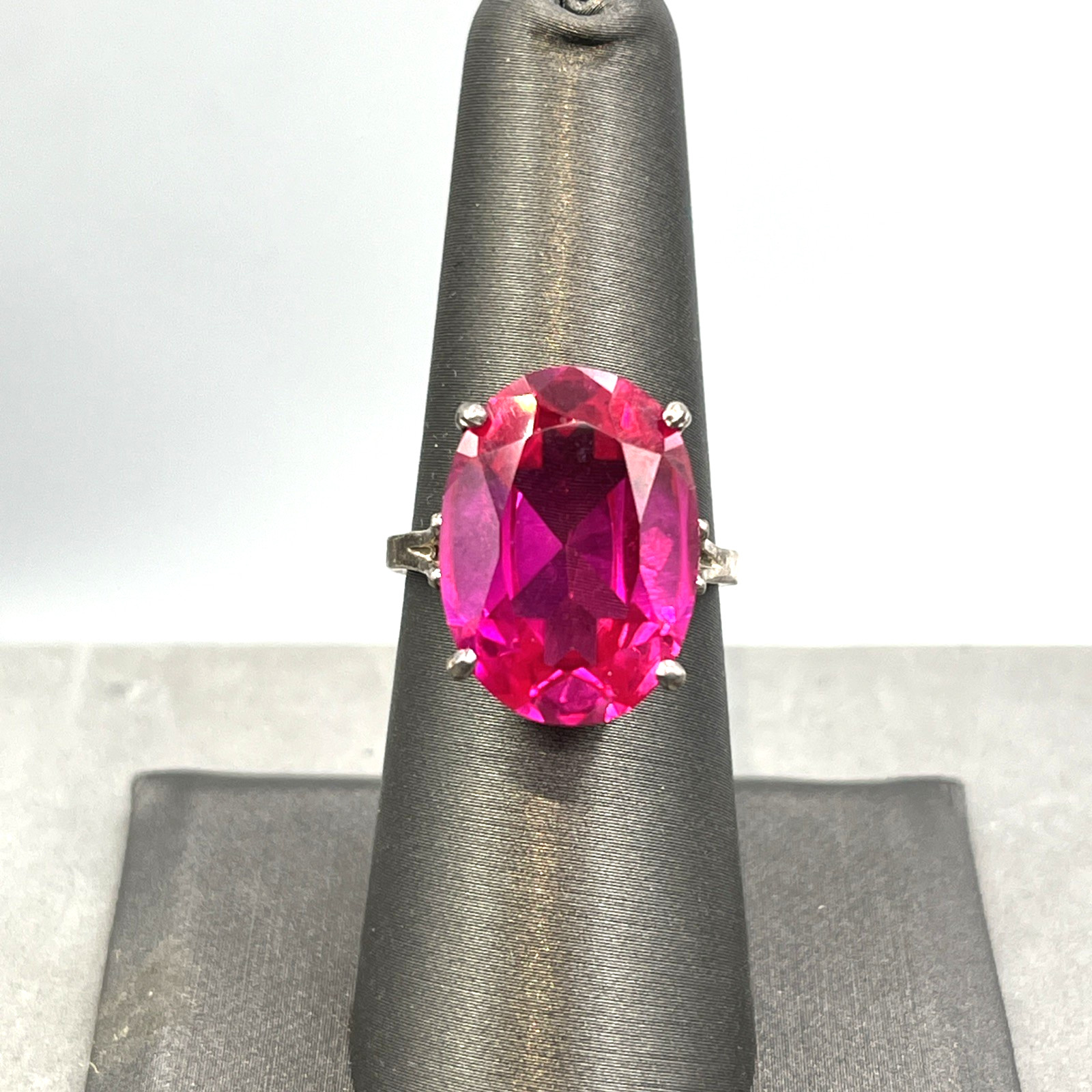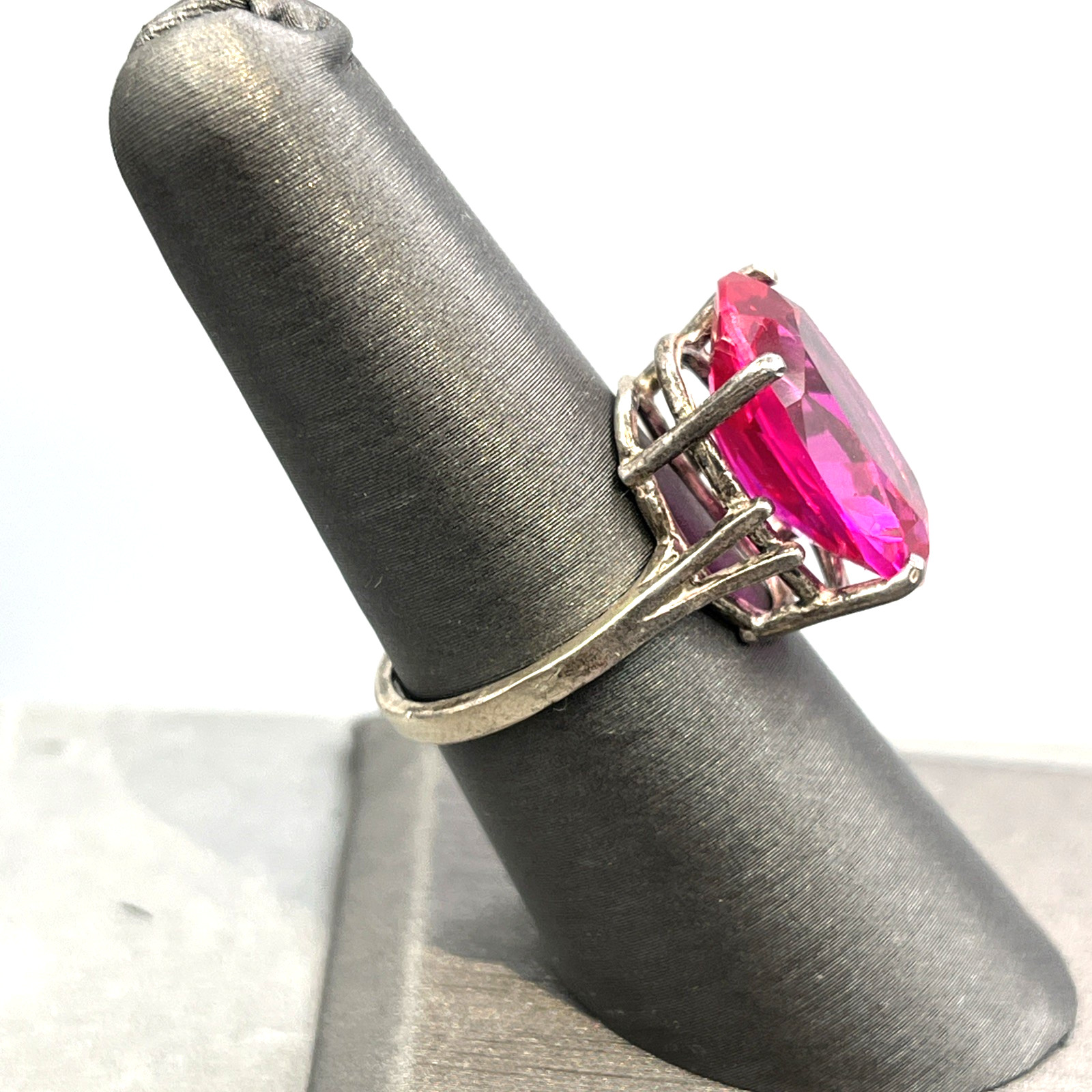 Sterling Silver Pink Sapphire Simulate Cocktail Ring Size 7 Lab Created
