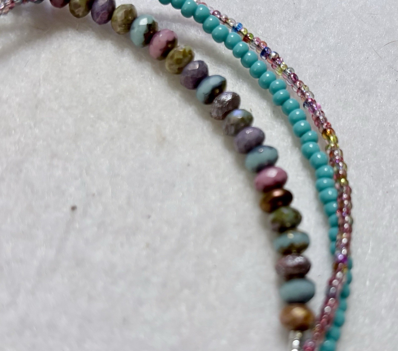 3 layer multi colored Czech Glass Bracelet. Perfect gift for her